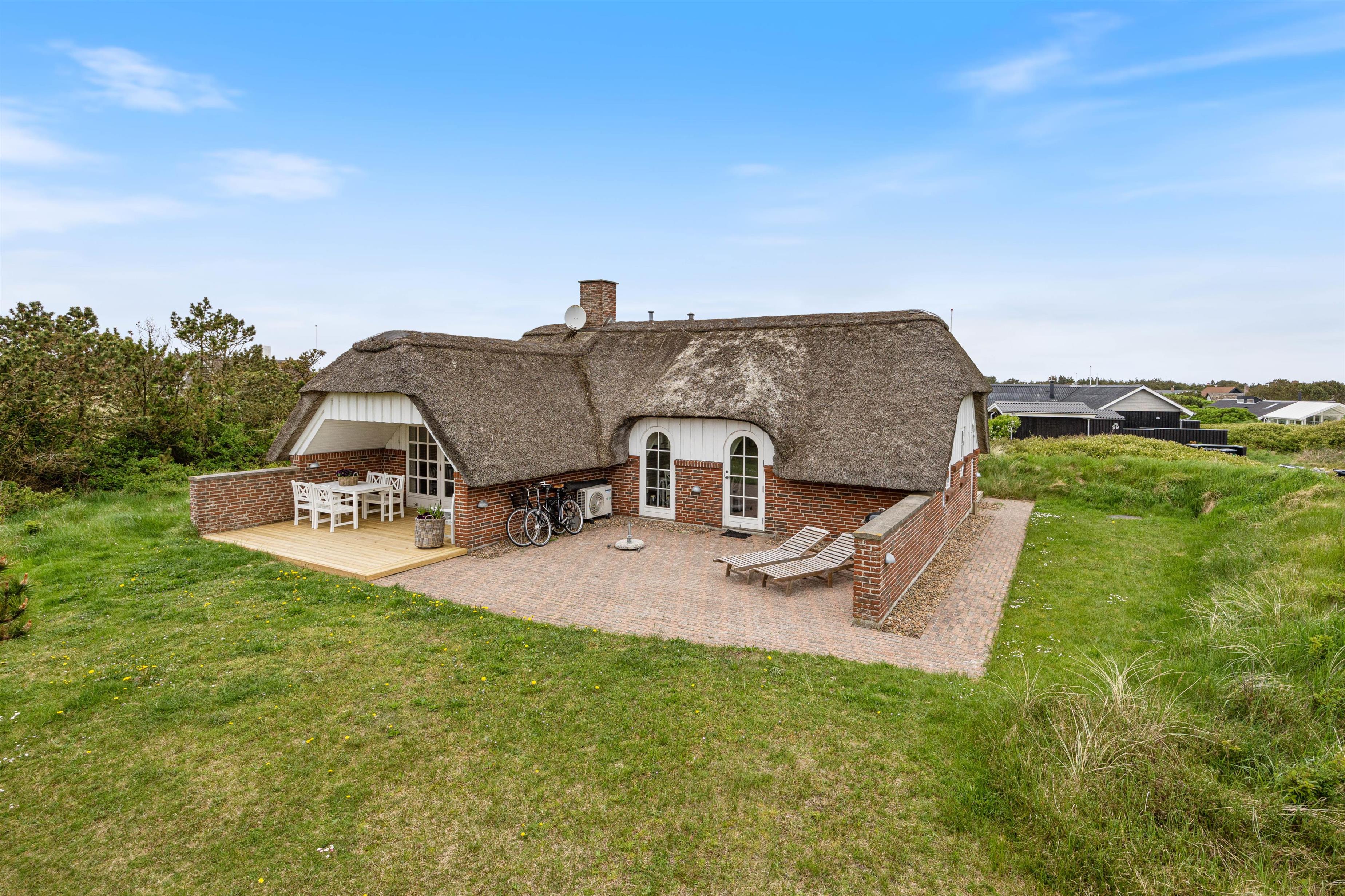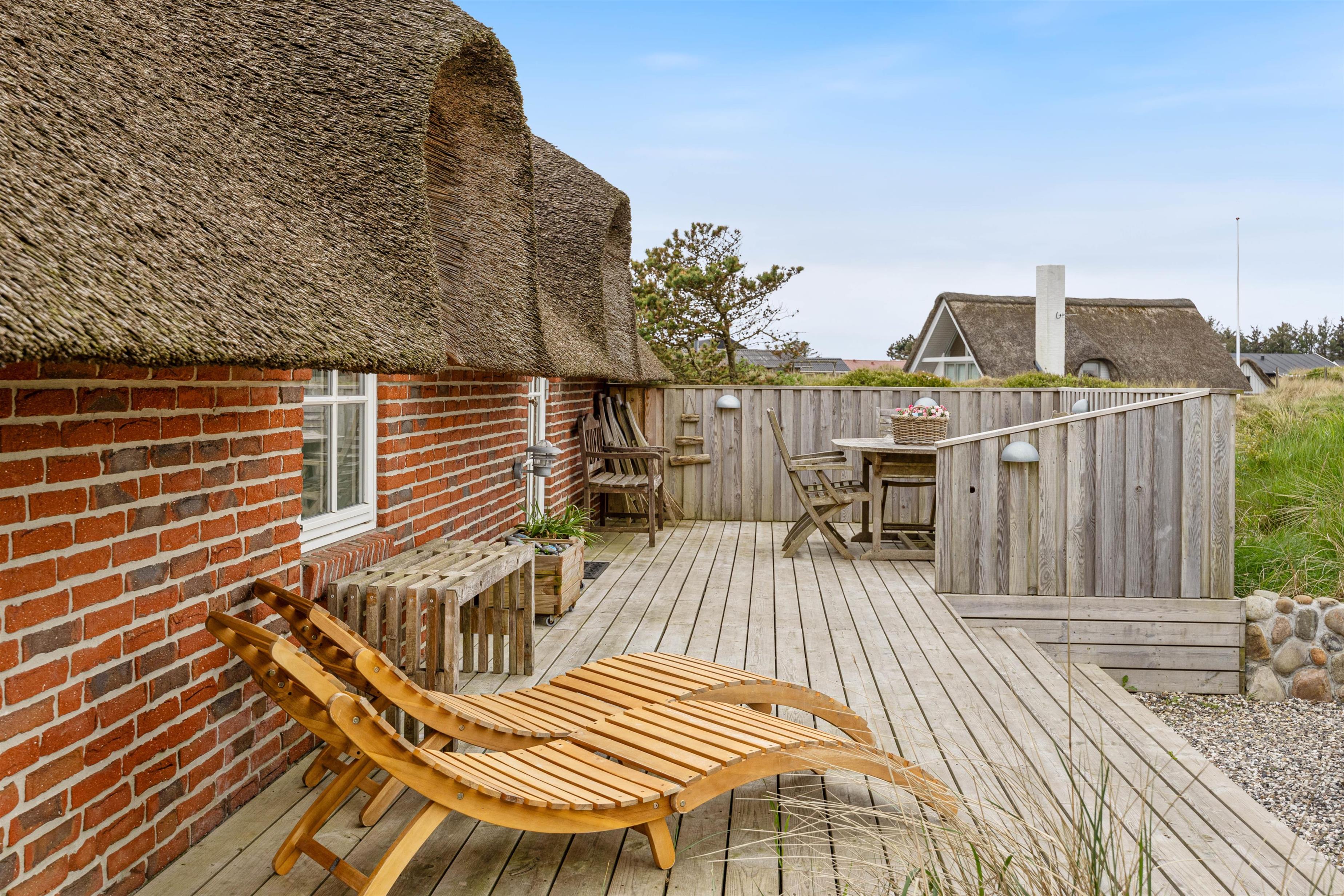 Sommerhuset har en god beliggenhed i Søndervig på en stille, blind stikvej kun 900 meter fra klitter og badestrand. I kan derfor se frem til at tilbringe dagene i rolige omgivelser, hvor I virkelig har mulighed for at slappe af. Hvis I trænger til ekstra selvforkælelse, bør I unde jer selv en tur i sommerhusets sauna. Det er ren balsam for sjælen. Især ovenpå en lang dag ved Vesterhavet, hvis kulden har bidt sig fast i kroppen.