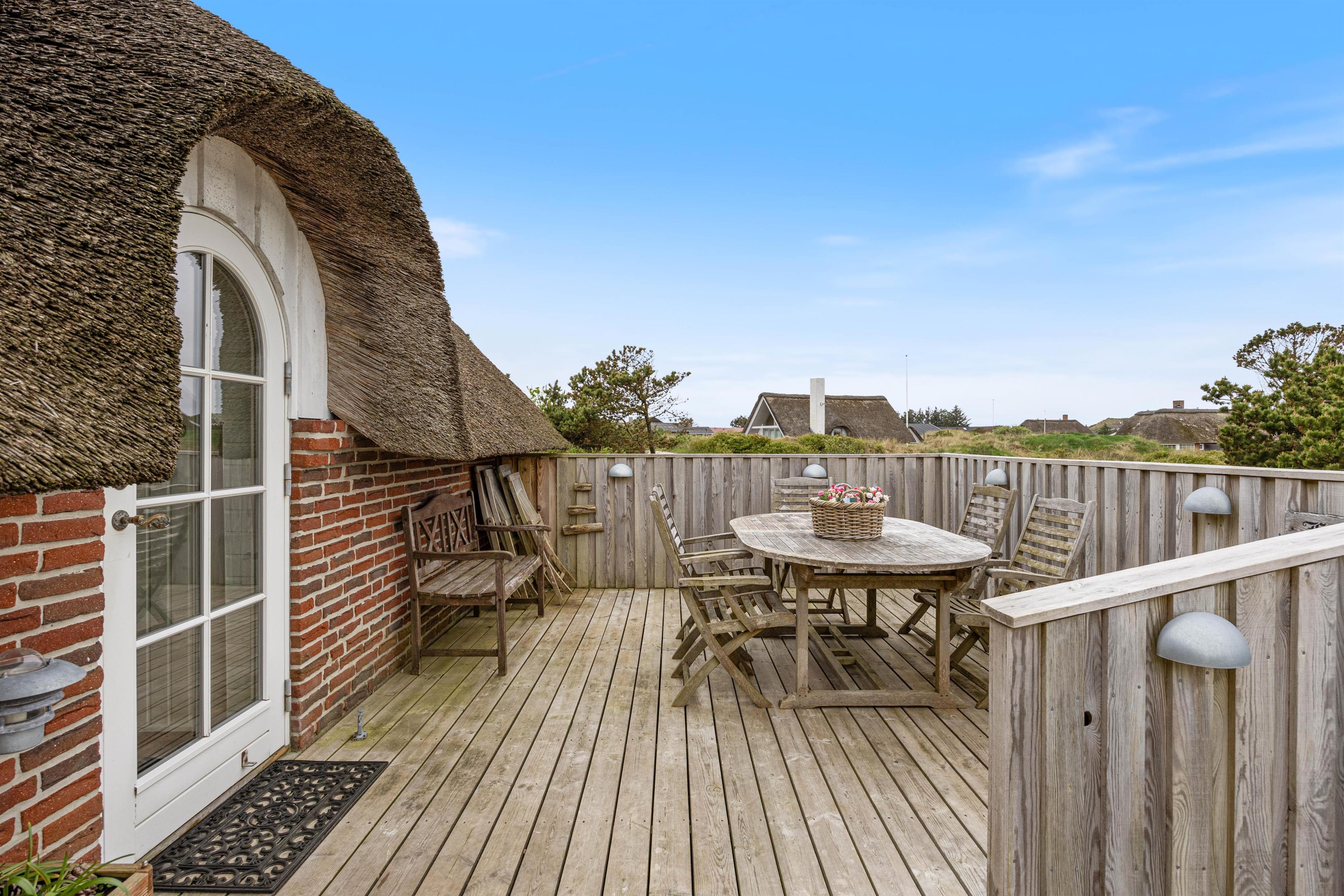 Når I træder indenfor i det stråtækte sommerhus på Hjelmevej, vil I blive mødt af en hyggelig og stemningsfuld atmosfære, der oser af romantisk sommerhusidyl. Indtrykket er lyst og venligt, hvilket skyldes de lyse trælofter og vægge, de store vinduespartier og det lette og romantiske interiør. Her er intet overladt til tilfældighederne, og alt fremstår velholdt og nøje udvalgt.