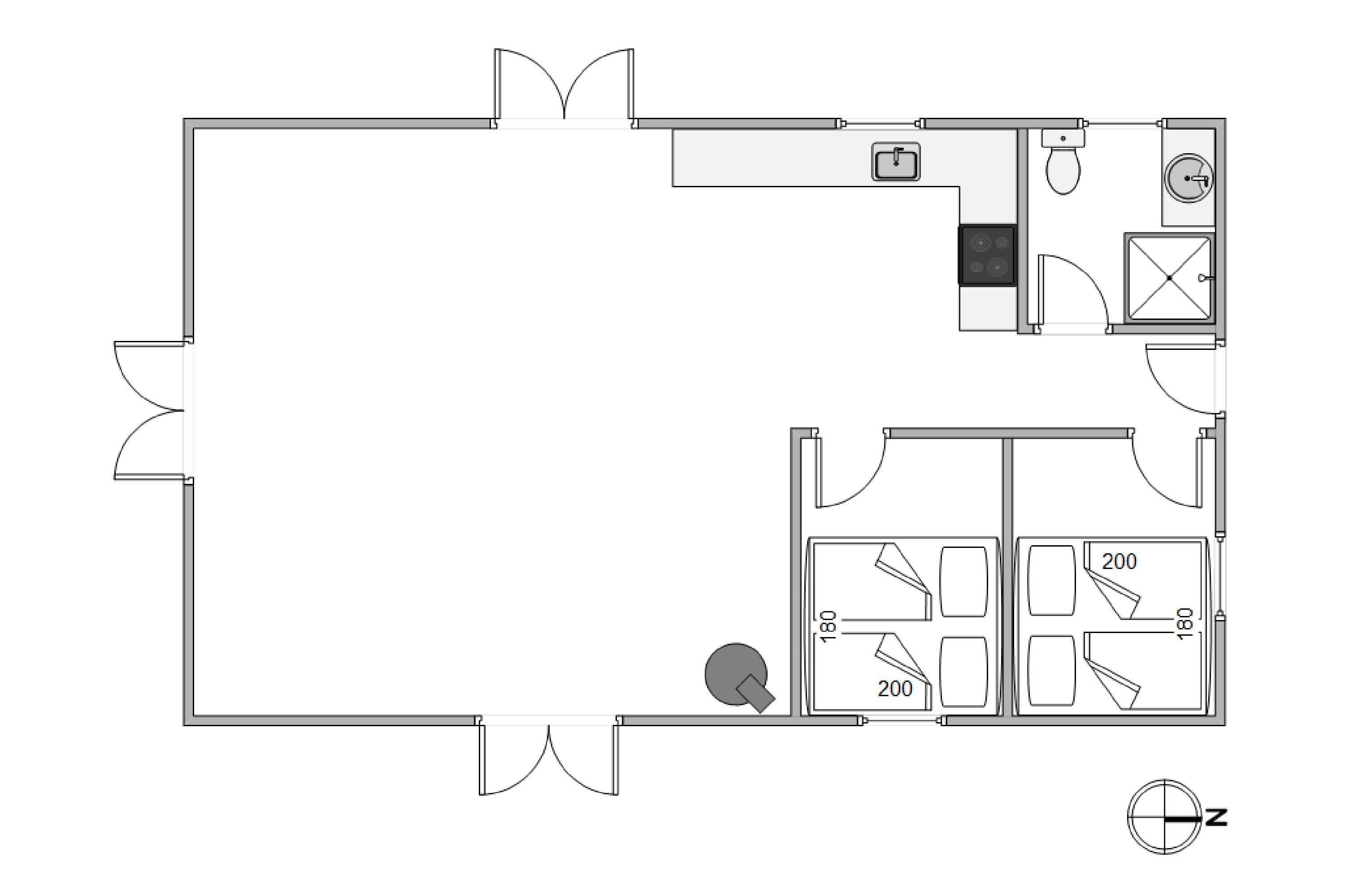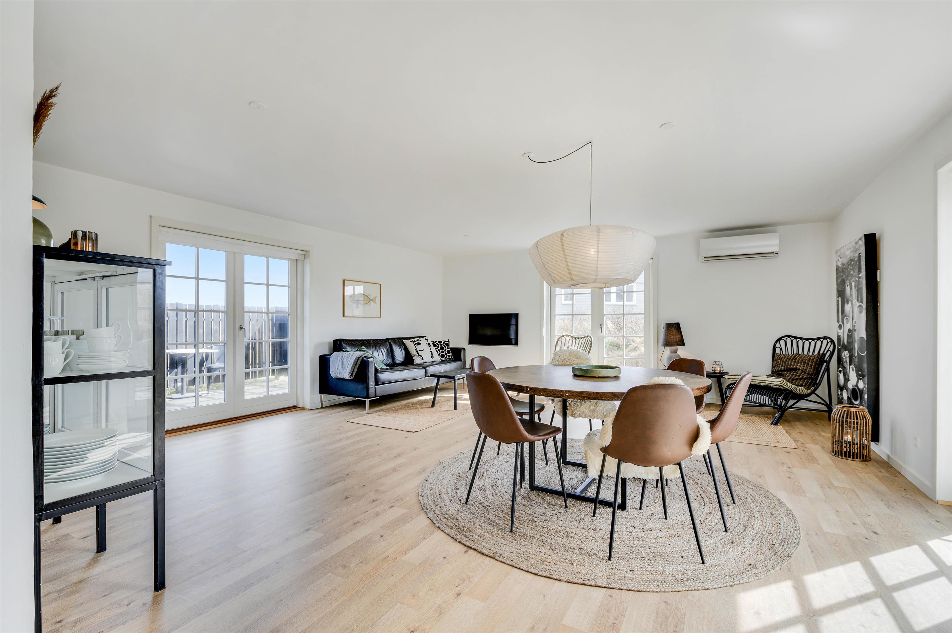 Sommerhuset har i 2021 gennemgået en renovering og fremstår stilfuldt og indbydende. Indretningen har et enkelt udtryk med flotte møbler i nordisk stil, der giver varme og personlighed til de lyse rum. Sommerhuset rummer plads til 4 personer fordelt på 2 gode soverum med dobbeltsenge. Køkkenet ligger i åben forbindelse med stuen. Det skaber et stort rum, hvor der er plads til at være sammen – også selvom I laver forskellige ting. Her kan I sidde foran brændeovnene på en kold vinterdag eller samles omkring spisebordet til en lækker middag med god vin.