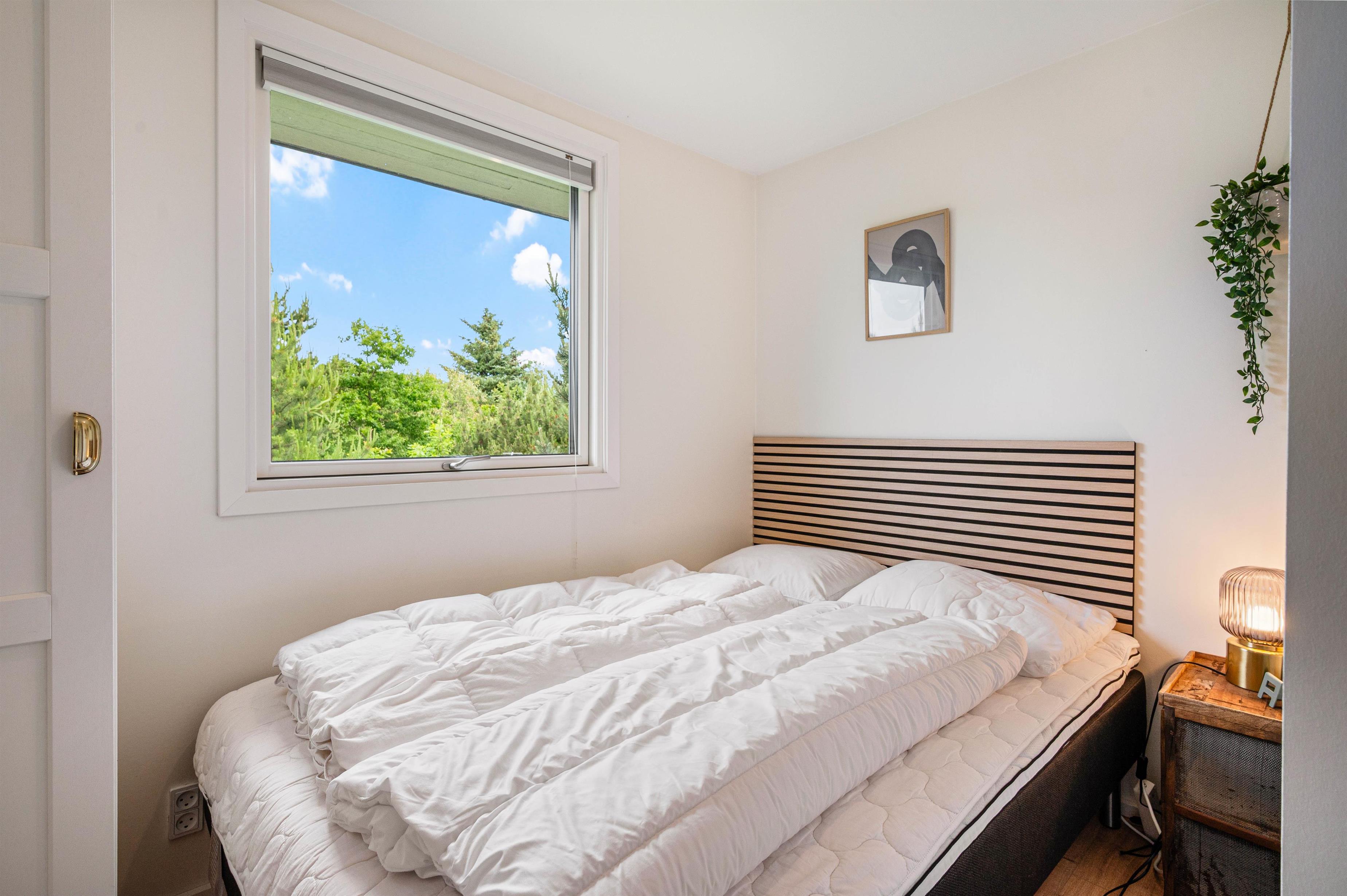 Fra alrummet kan I også nyde udsigten til sommerhusets have og den omkringliggende natur gennem de store vinduespartier, der samtidig giver et godt lysindfald i rummet.