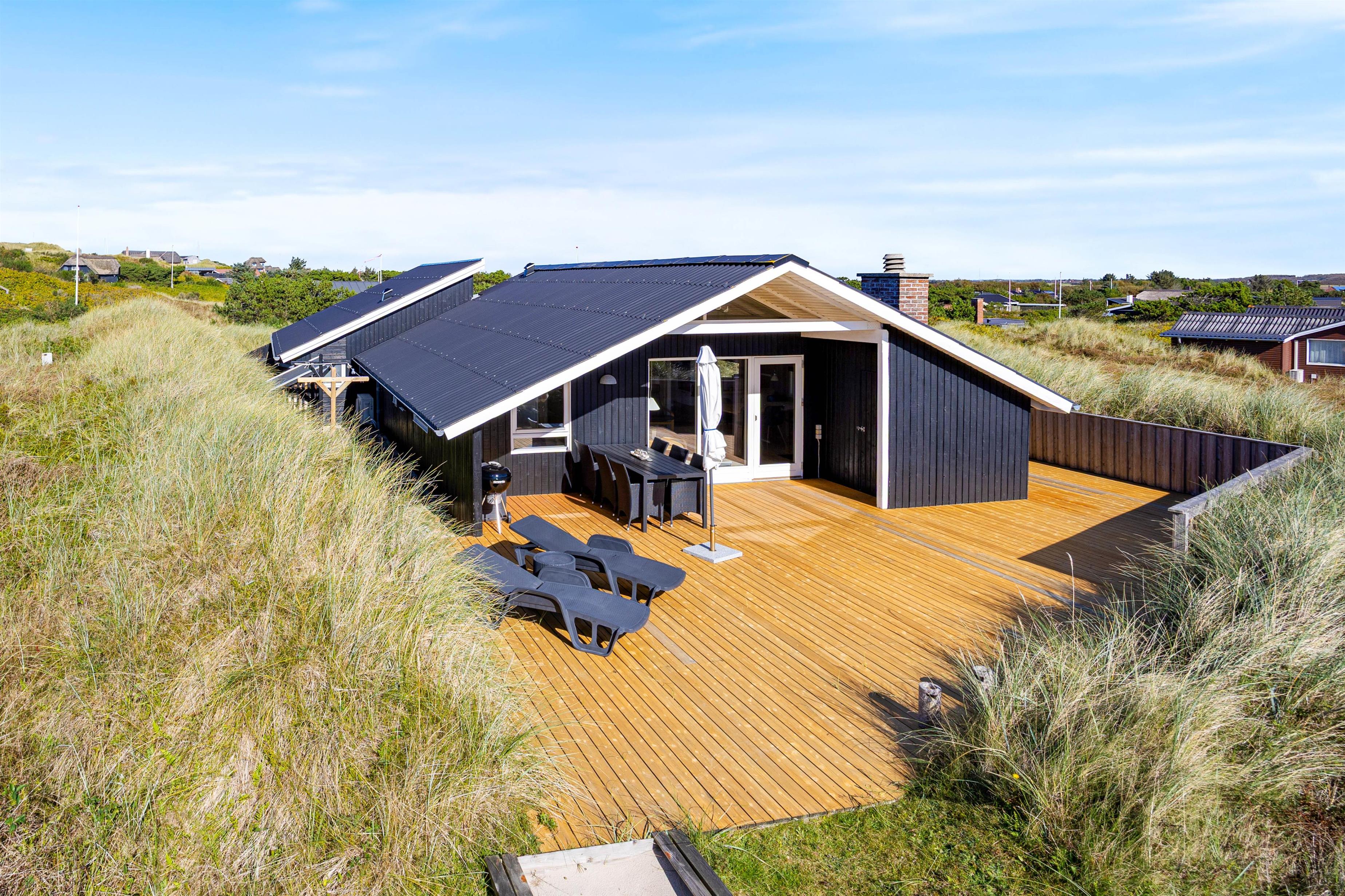 Midt i Søndervigs flotte klitlandskab, kun 400 meter fra det brusende Vesterhav, ligger dette klassiske sommerhus og venter på jer. Sommerhuset er løbende blevet renoveret, senest i 2020, og har et virkelig indbydende indre med blandt andet brændeovn og 2 badeværelser. En stor træterrasse omgiver hele feriehuset, og prikken over i’et er den skønne beliggenhed på en kuperet klitgrund, hvor I ugeneret kan nyde udsigten til området.