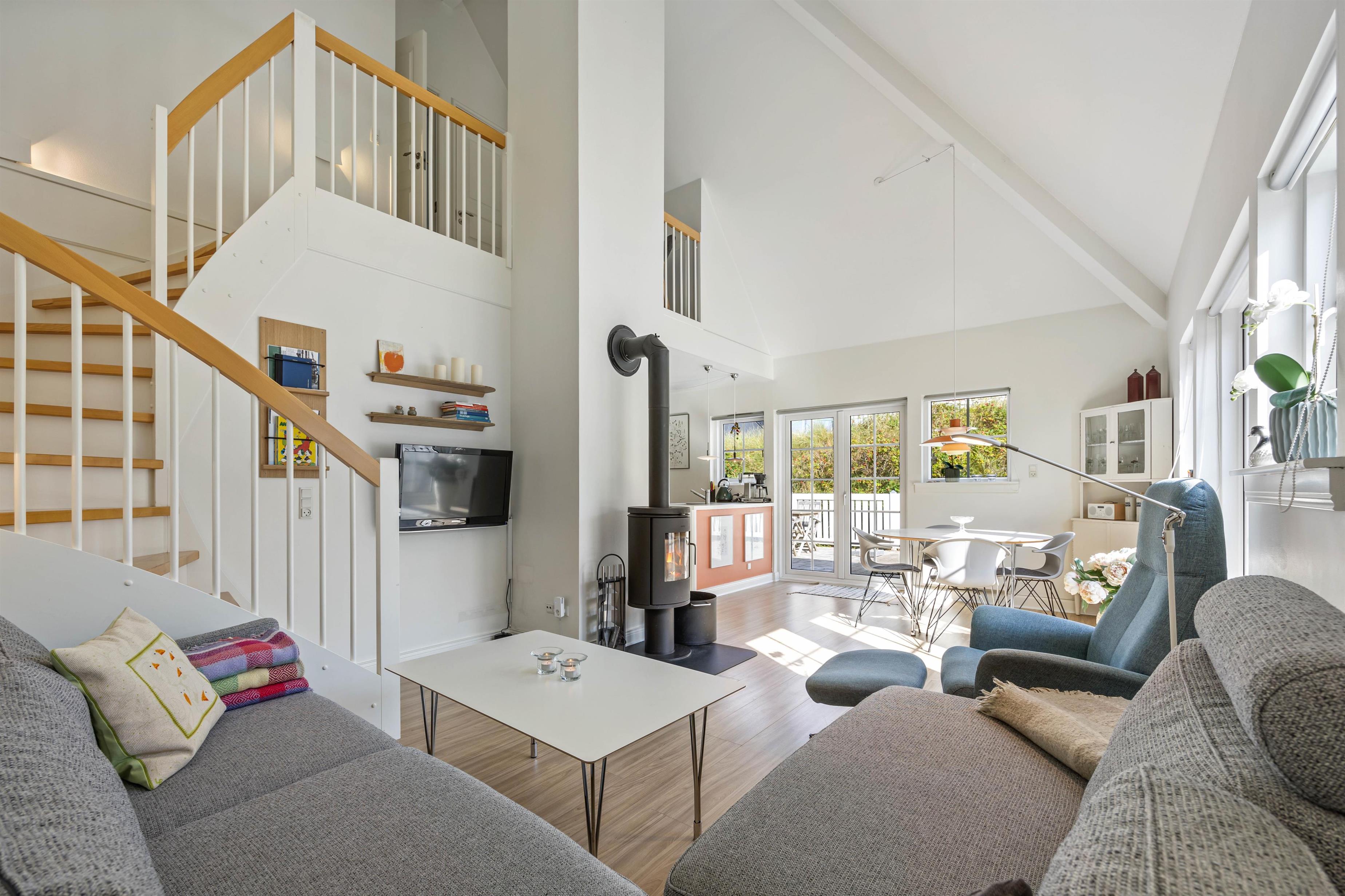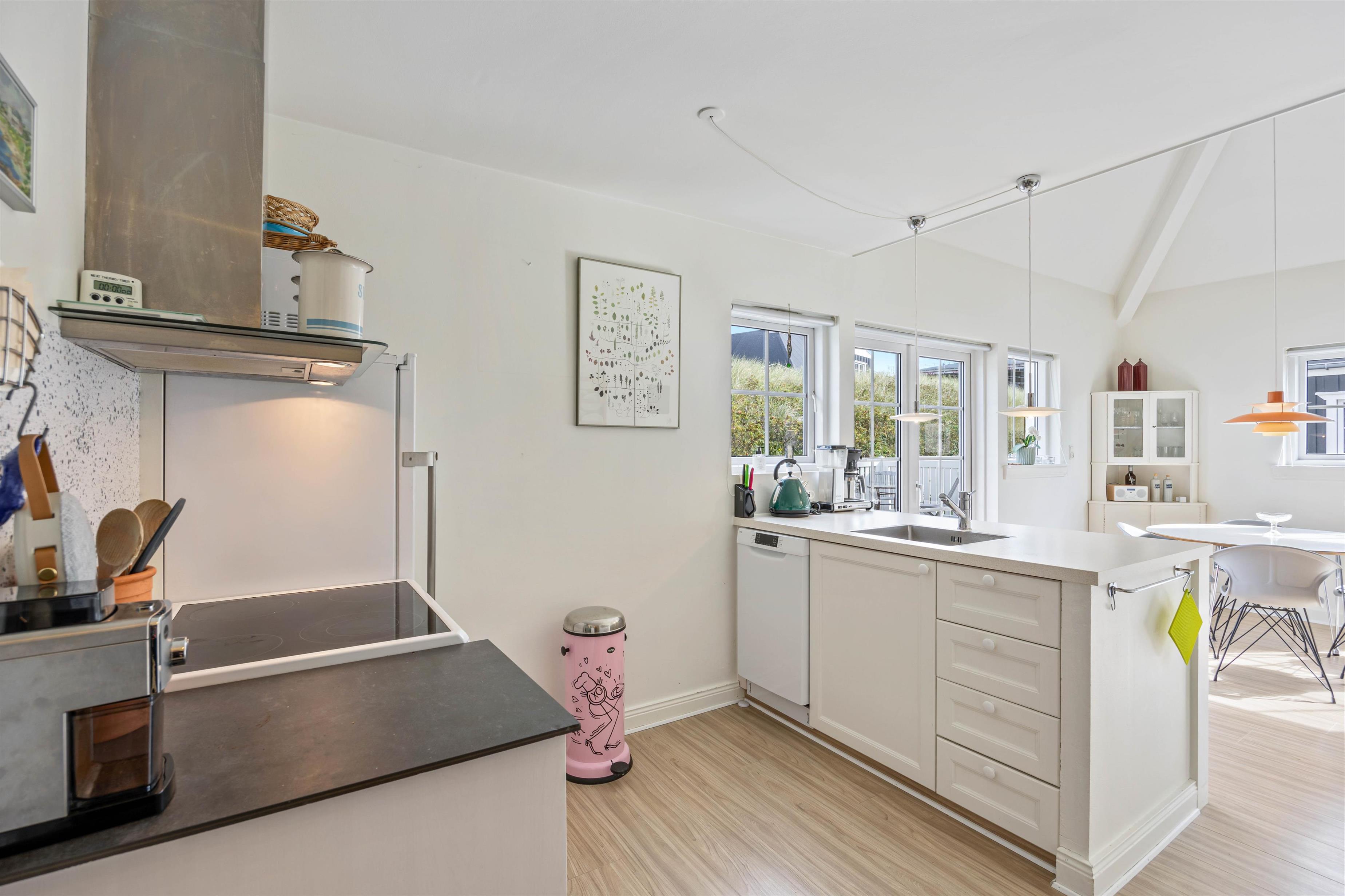 Om aftenen kan du beundre solnedgangen over klitterne med en lækker kold drink og afslutte aftenen med hyggelige samtaler. Hvis vejret ikke tillader det, kan man hygge sig med en spændende spilaften ved spisebordet eller nyde en hyggelig filmaften med popcorn og det hele. Det lyder alt sammen som ferie, og det er præcis sådan, det skal være i denne hyggelige ferielejlighed.