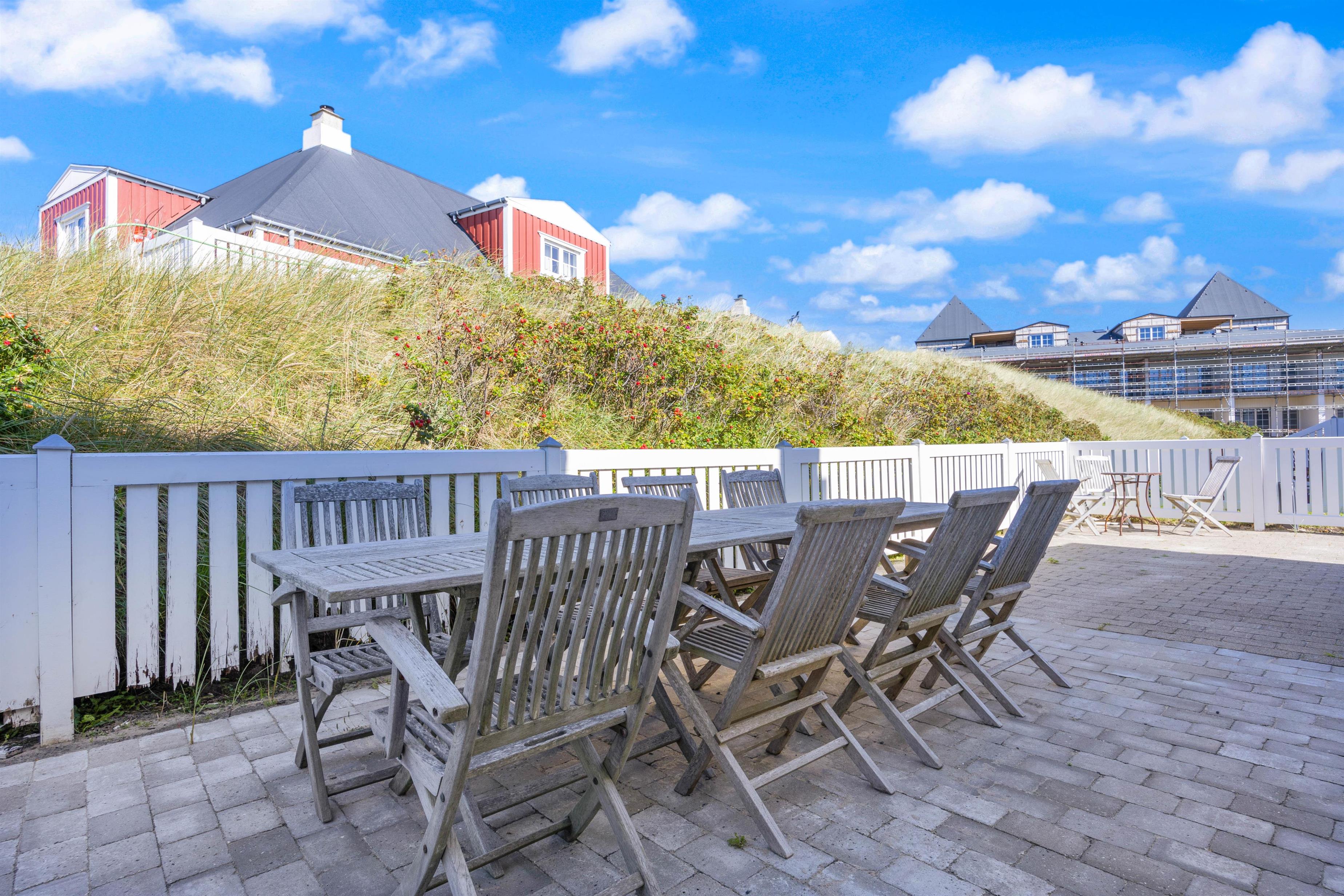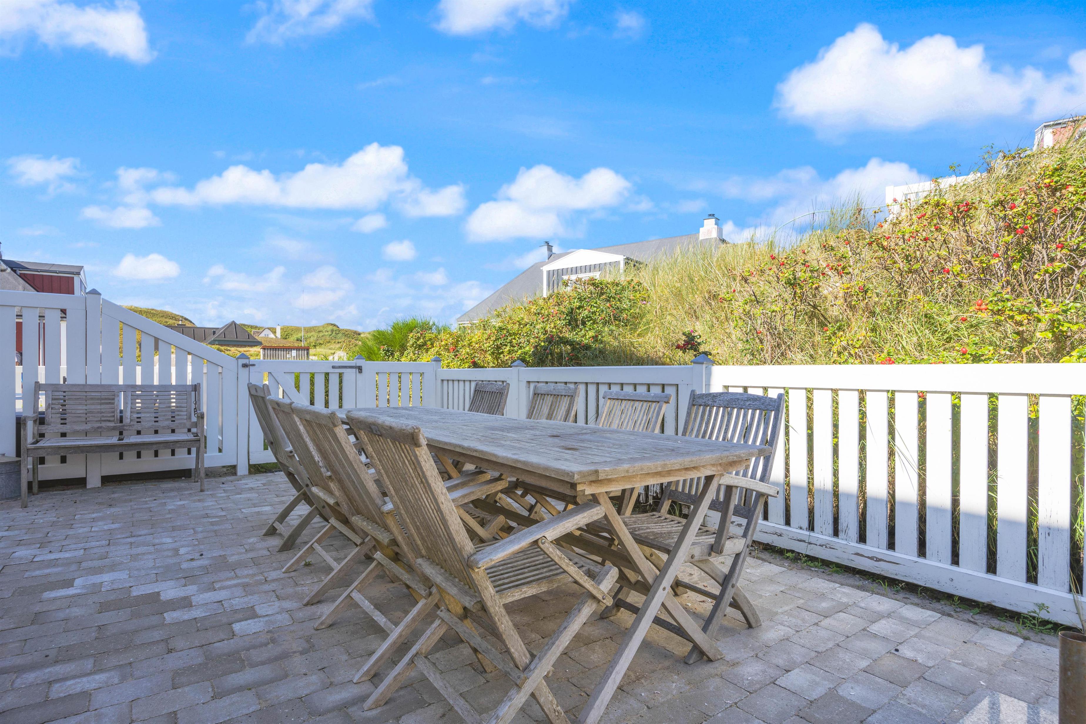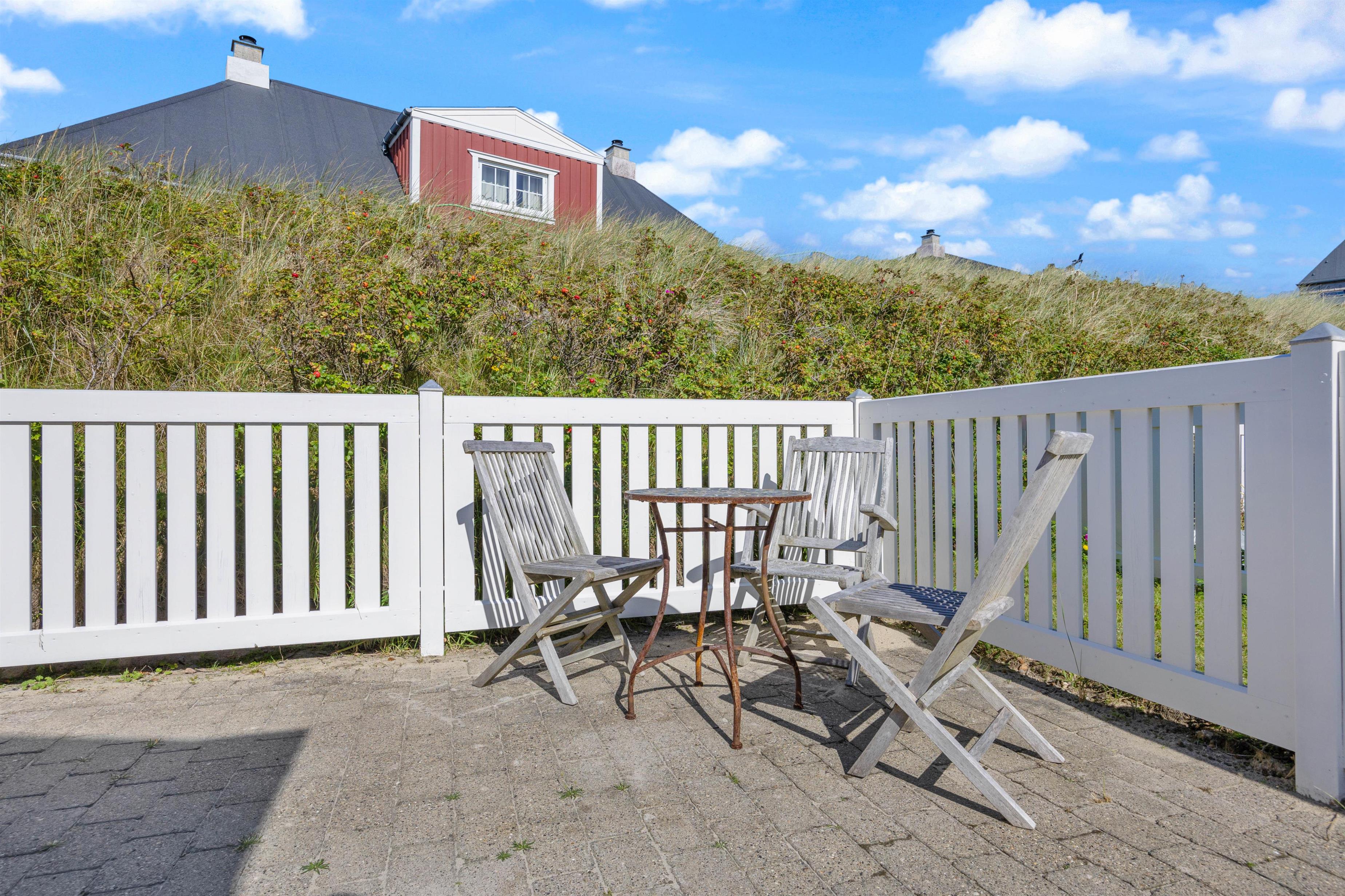 Hyggelig, lukket terrasse tæt på stranden