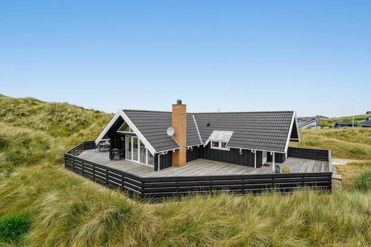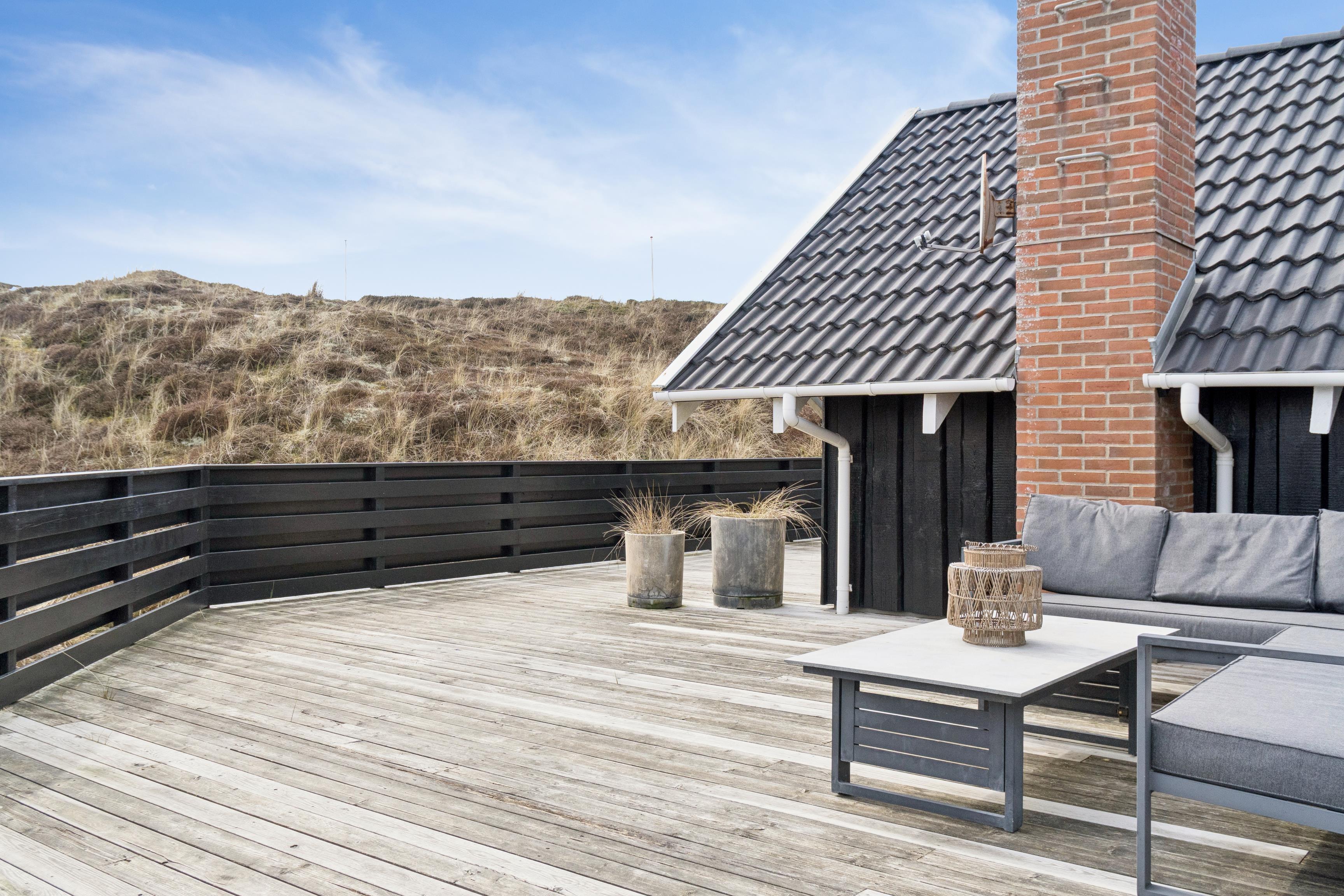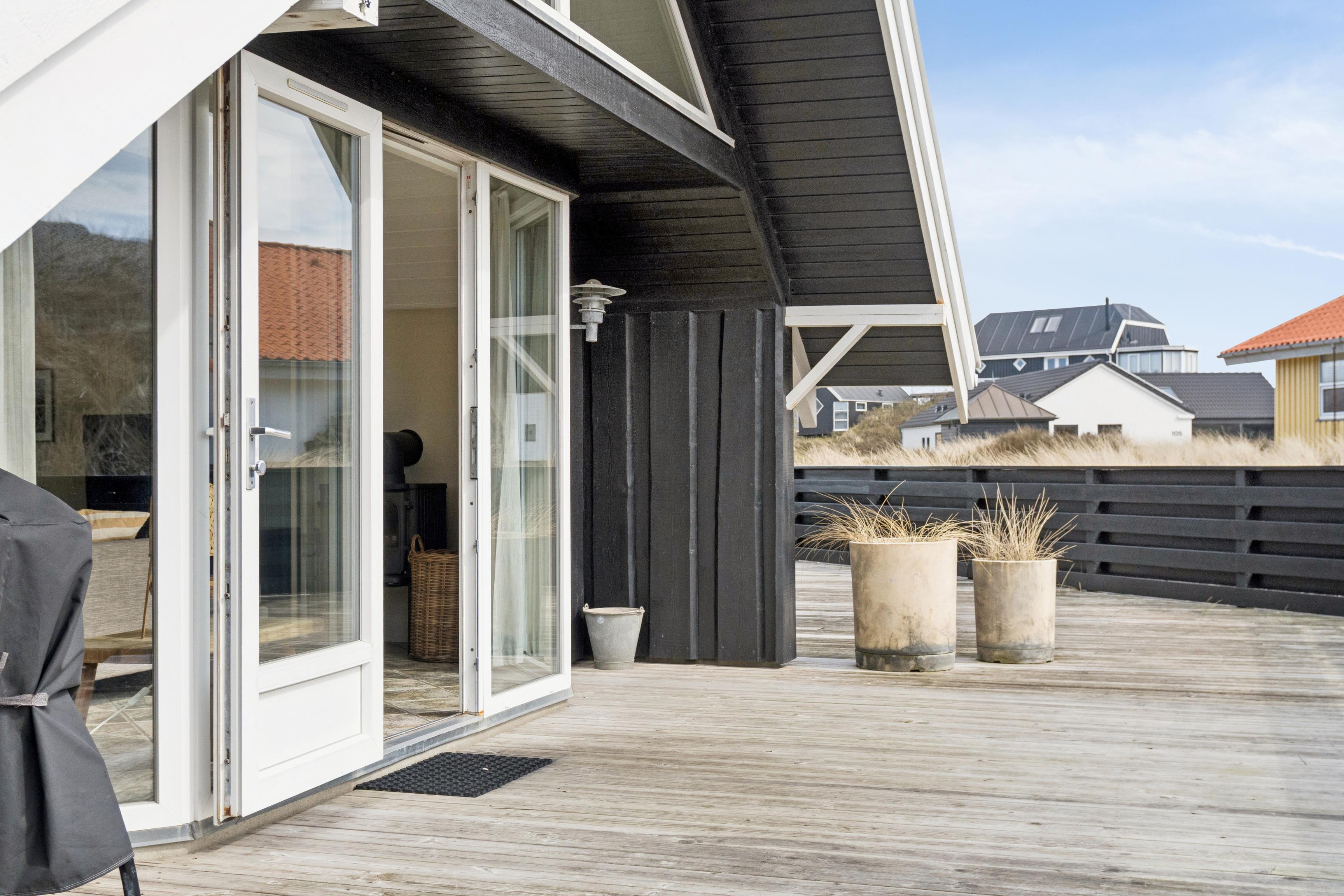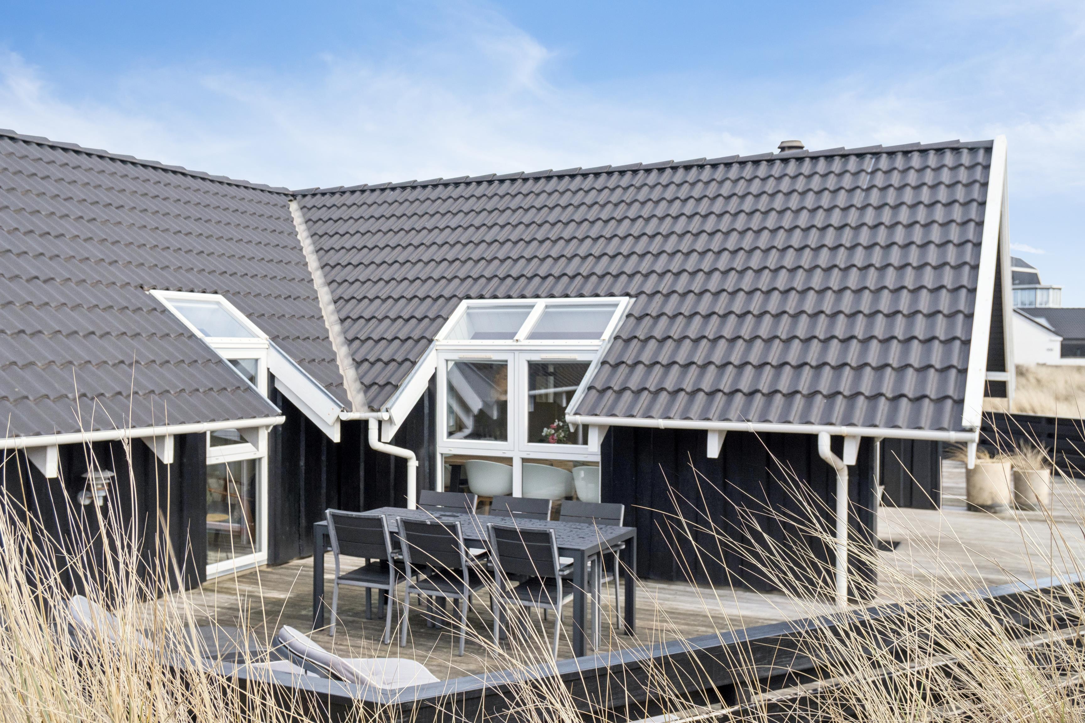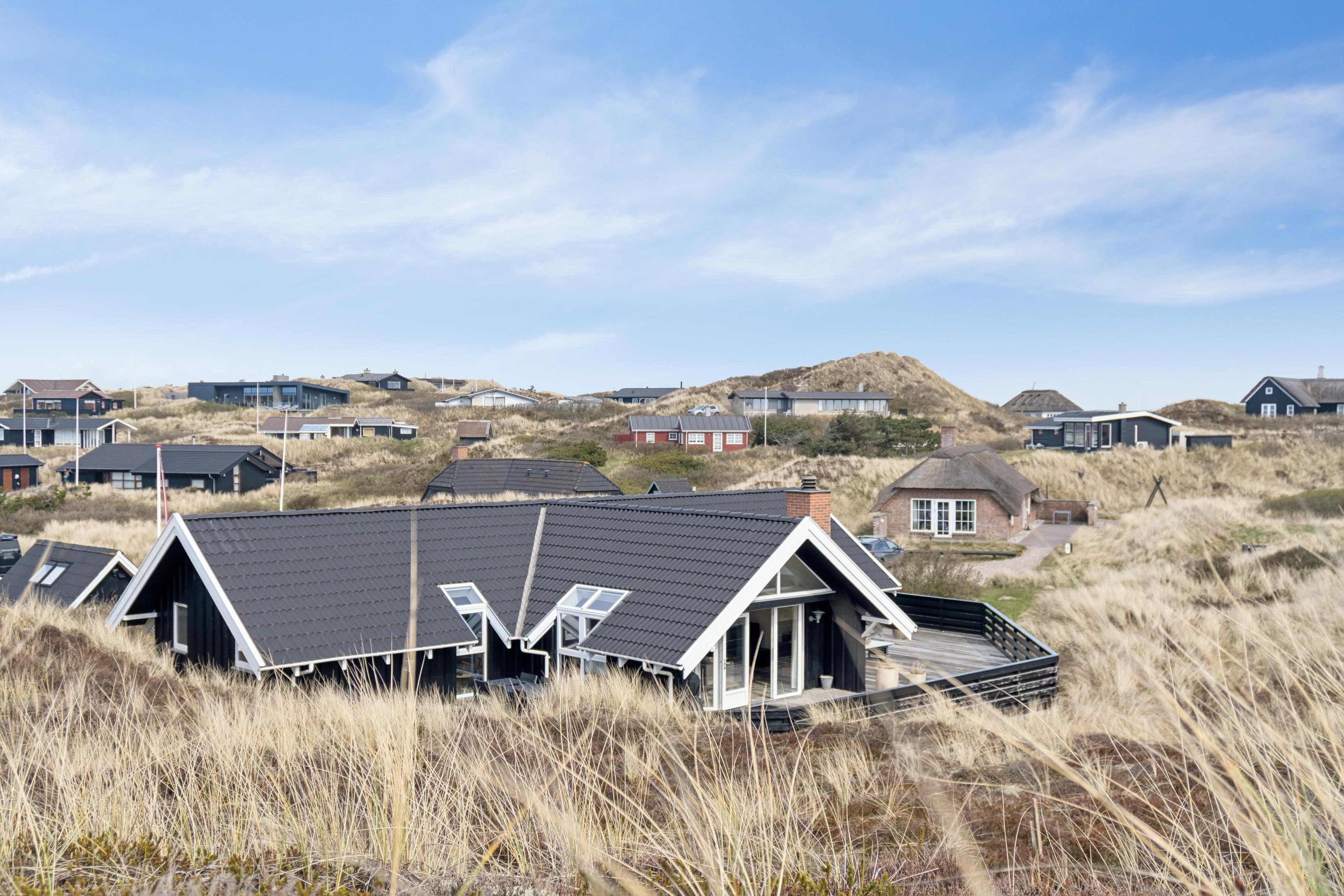 Hyggeligt sommerhus i første klitrække med stor terrasse og udendørs spa, kun 250 m fra Vesterhavet i Søndervig.