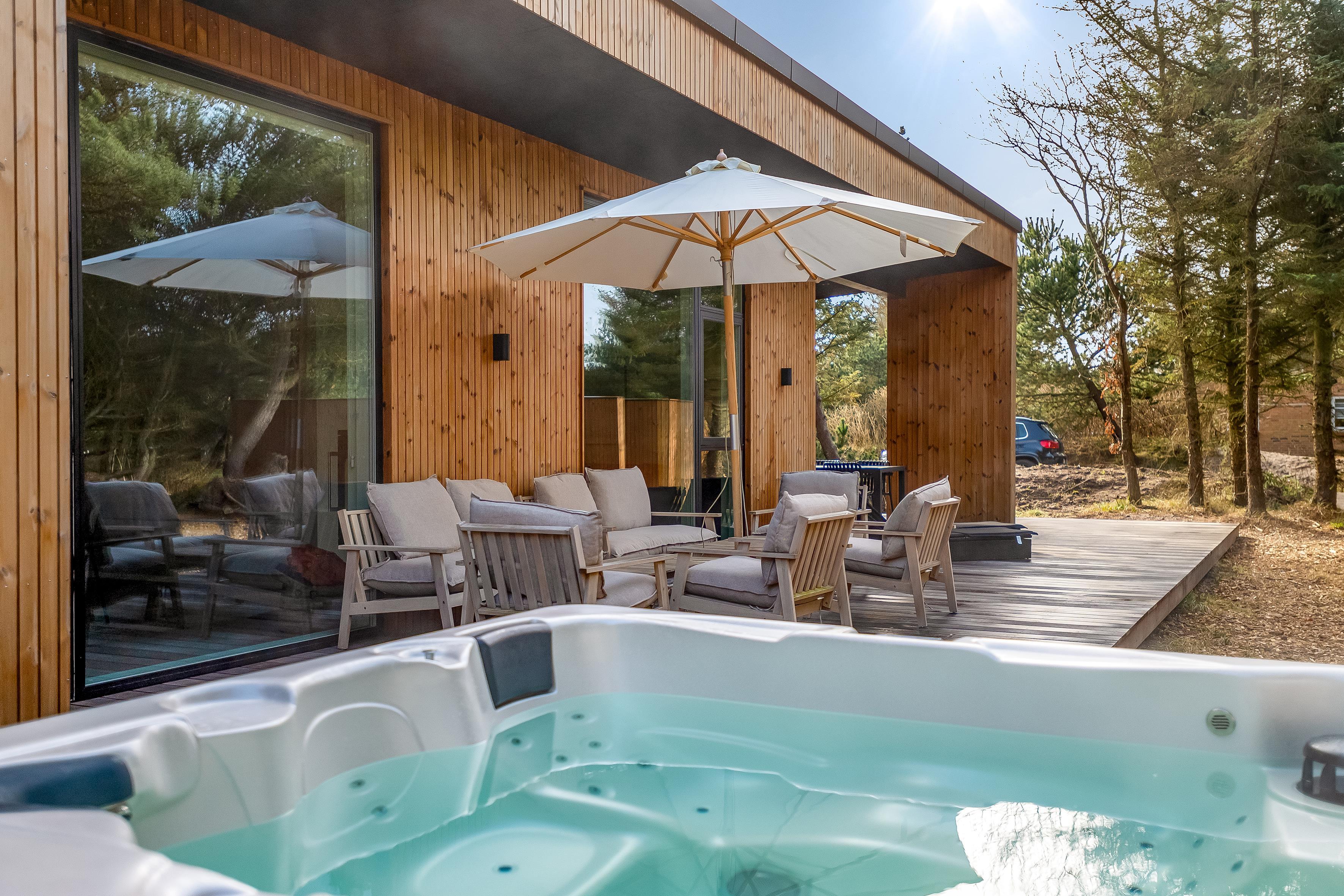 Moderne luksusferiehus i Søndervig med spa, sauna og aktivitetsrum, kun 500 meter fra Vesterhavet.