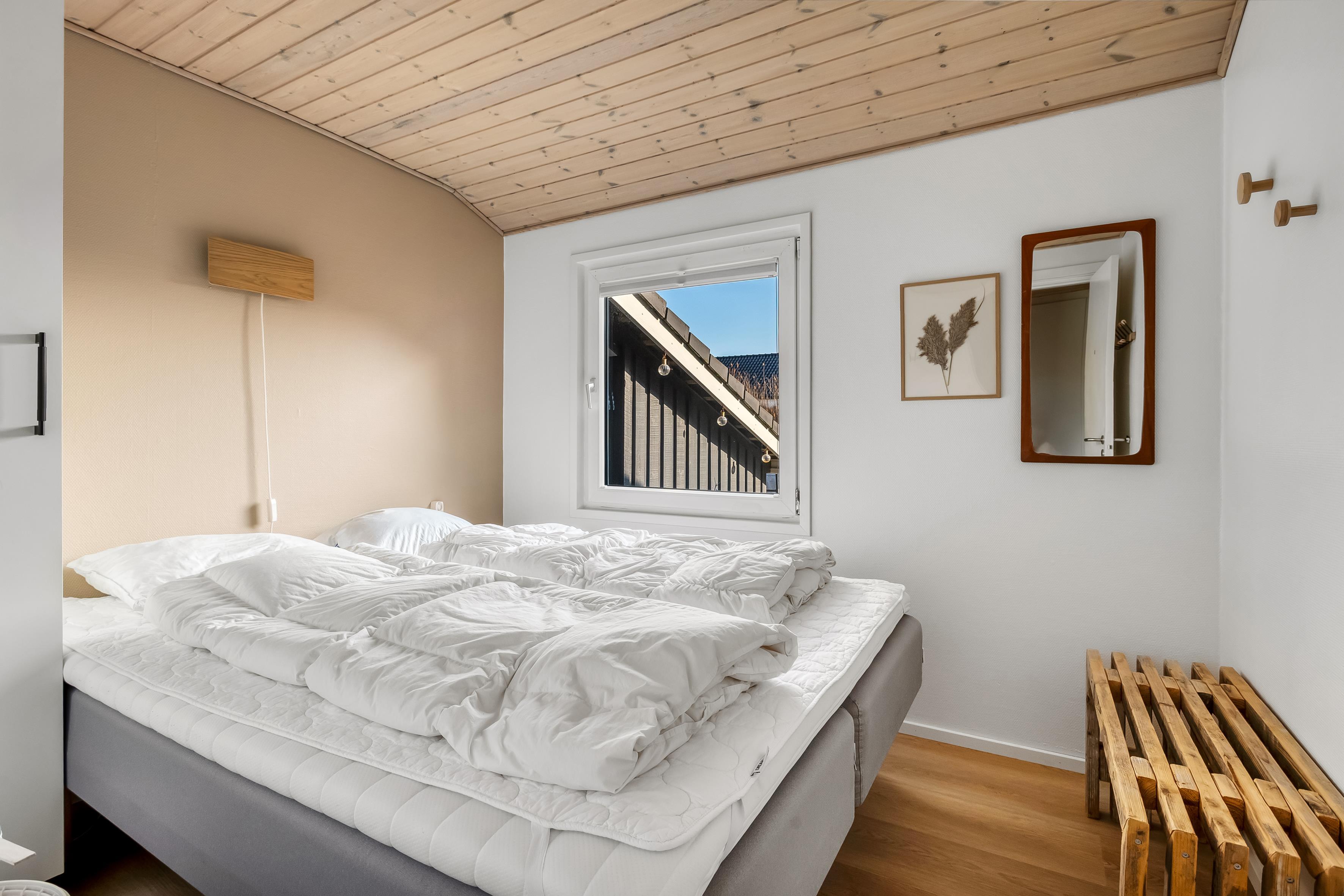 Med 120 m² byder sommerhuset på fire komfortable soveværelser. 4 af værelserne har dobbeltsenge, – alle perfekte til en god nats søvn og opladning til nye oplevelser.