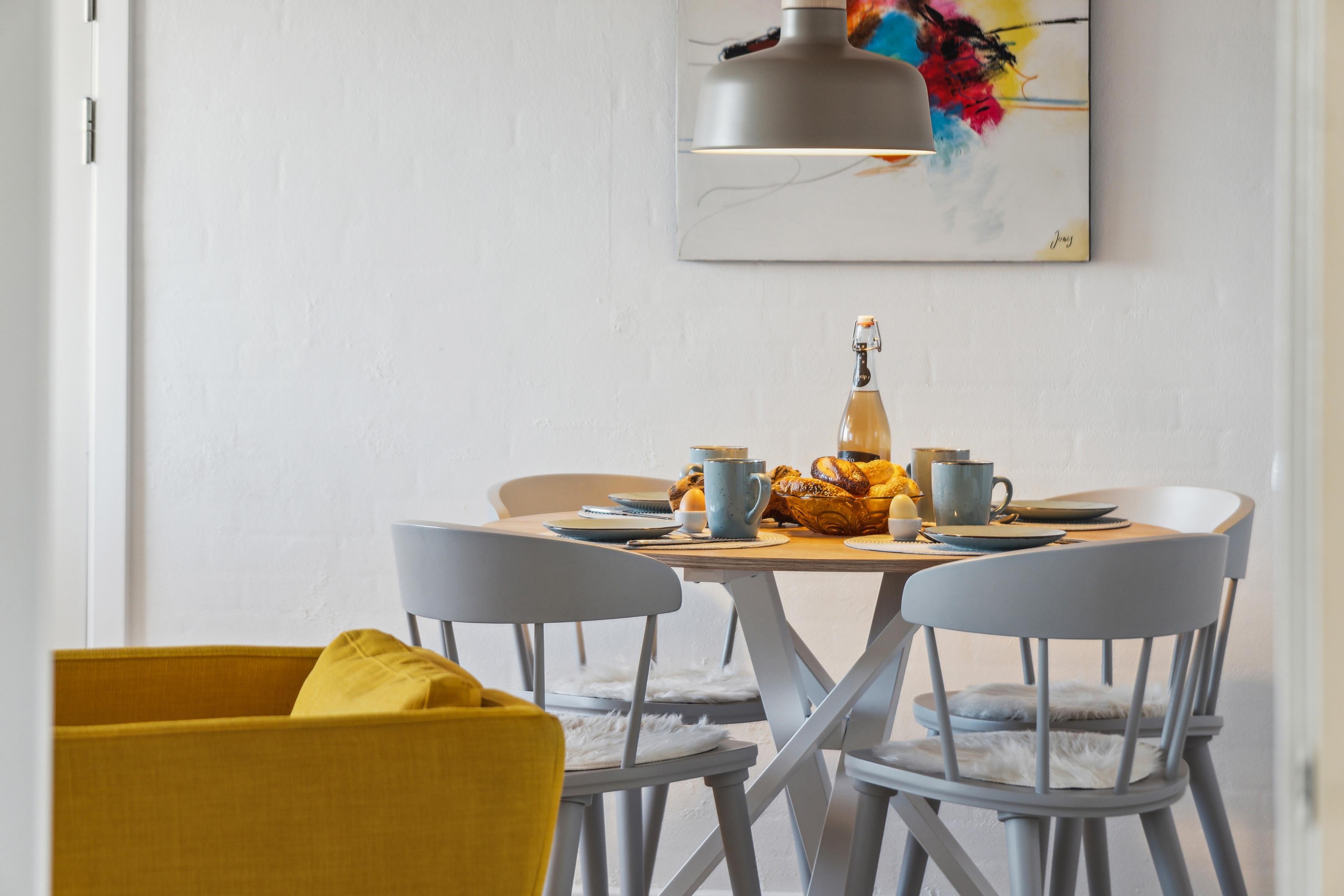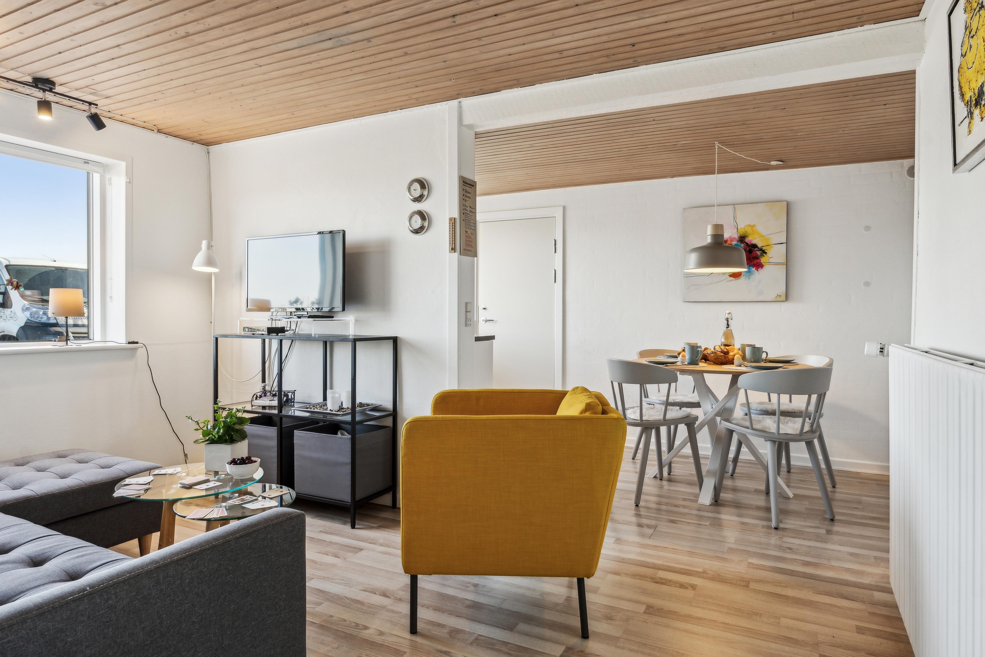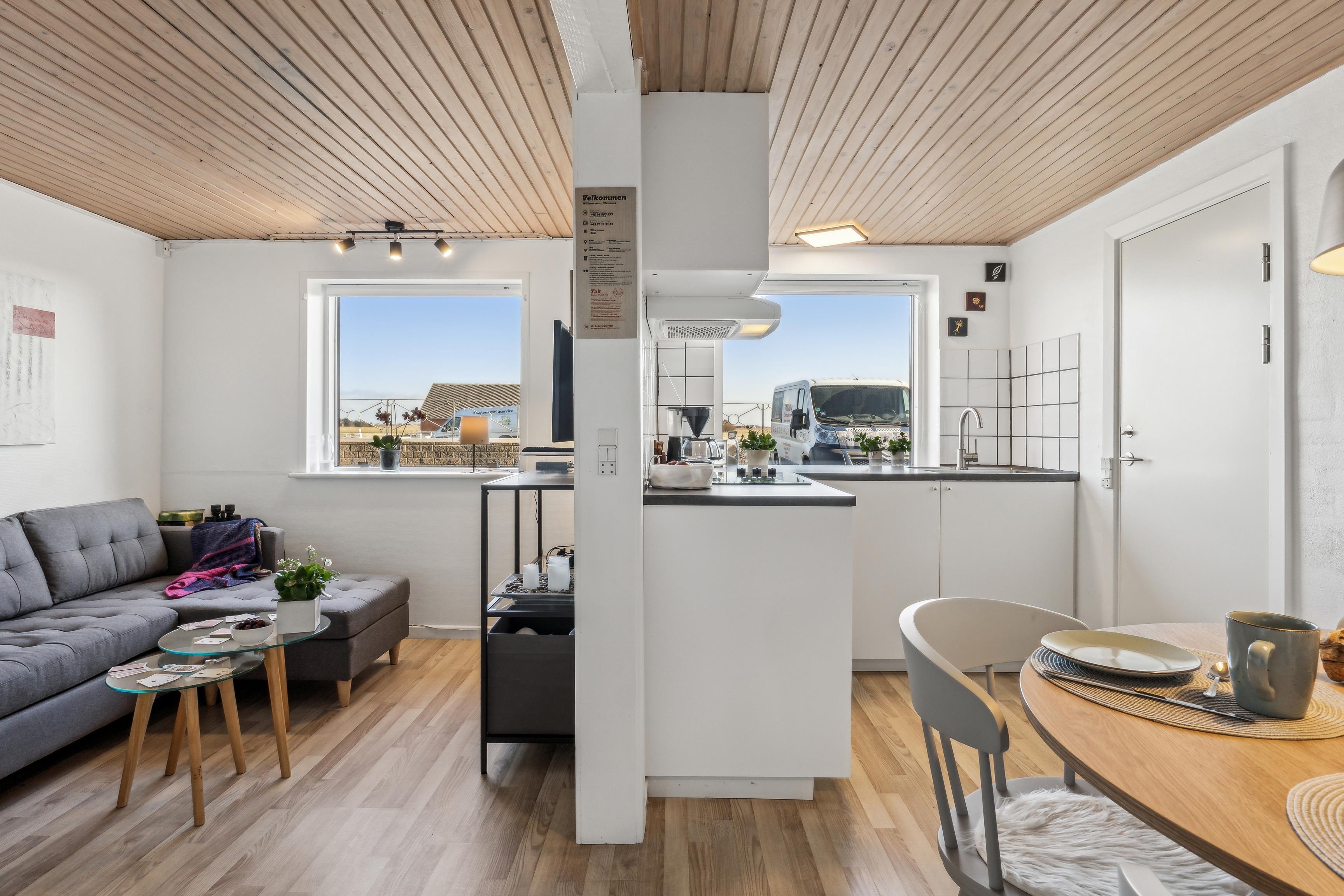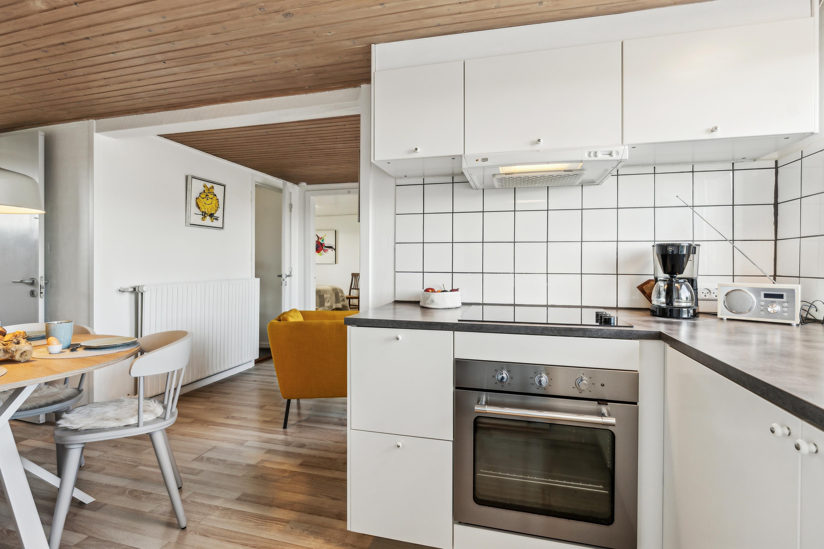 Det fuldt udstyrede køkken ligger i åben forbindelse med stuen, så I kan være sammen, selv når der laves mad. Måltiderne kan nydes ved den hyggelige spiseplads, og bagefter er sofaafdelingen perfekt til afslapning og filmaftener. Her kan I se danske og tyske kanaler på fladskærms-tv’et eller streame jeres yndlingsindhold via Chromecast.