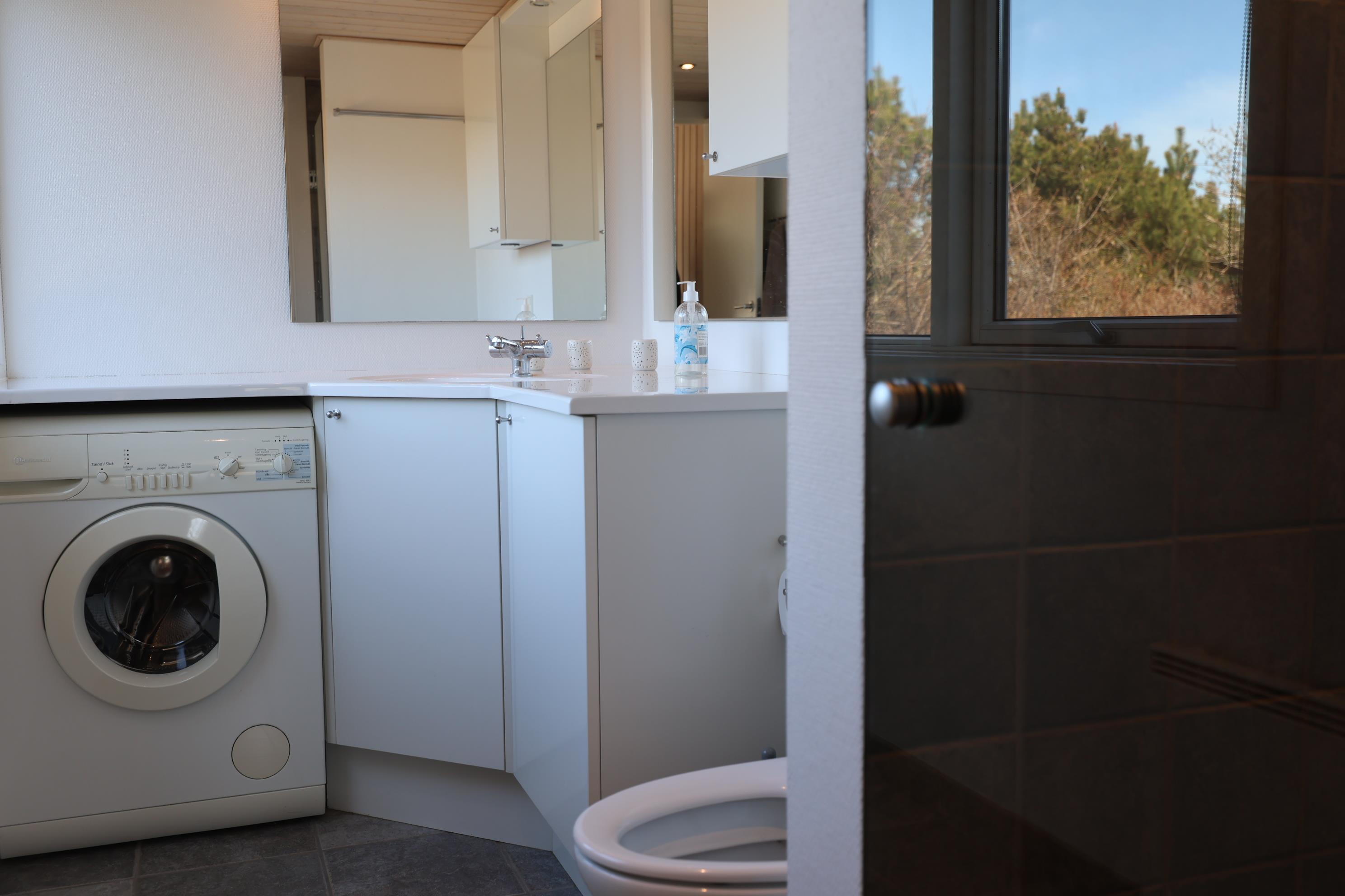 Sommerhuset har 2 badeværelser, begge med gulvvarme, hvilket giver ekstra komfort – især uden for sommersæsonen. Derudover er der vaskemaskine og gratis Wi-Fi.