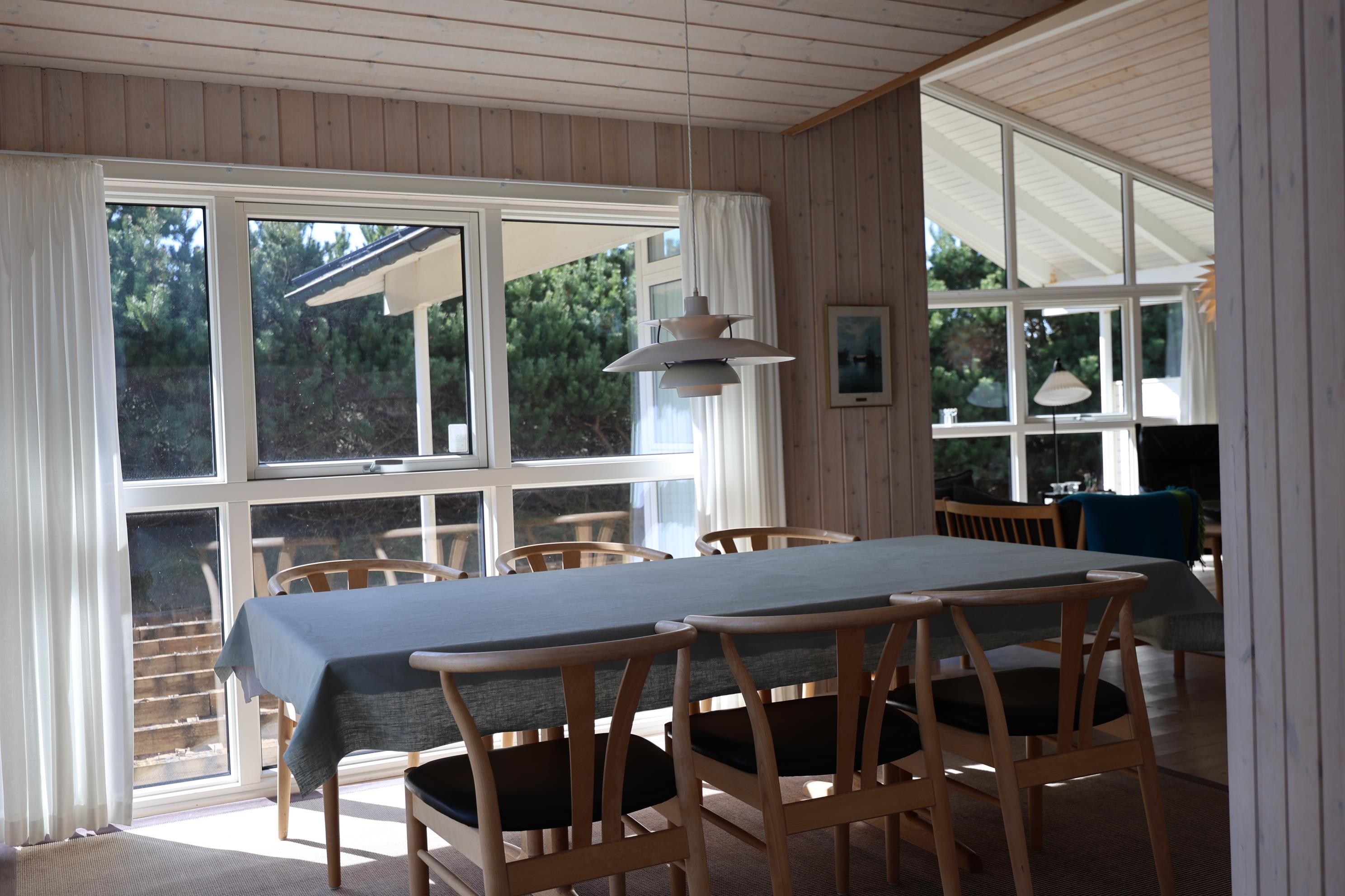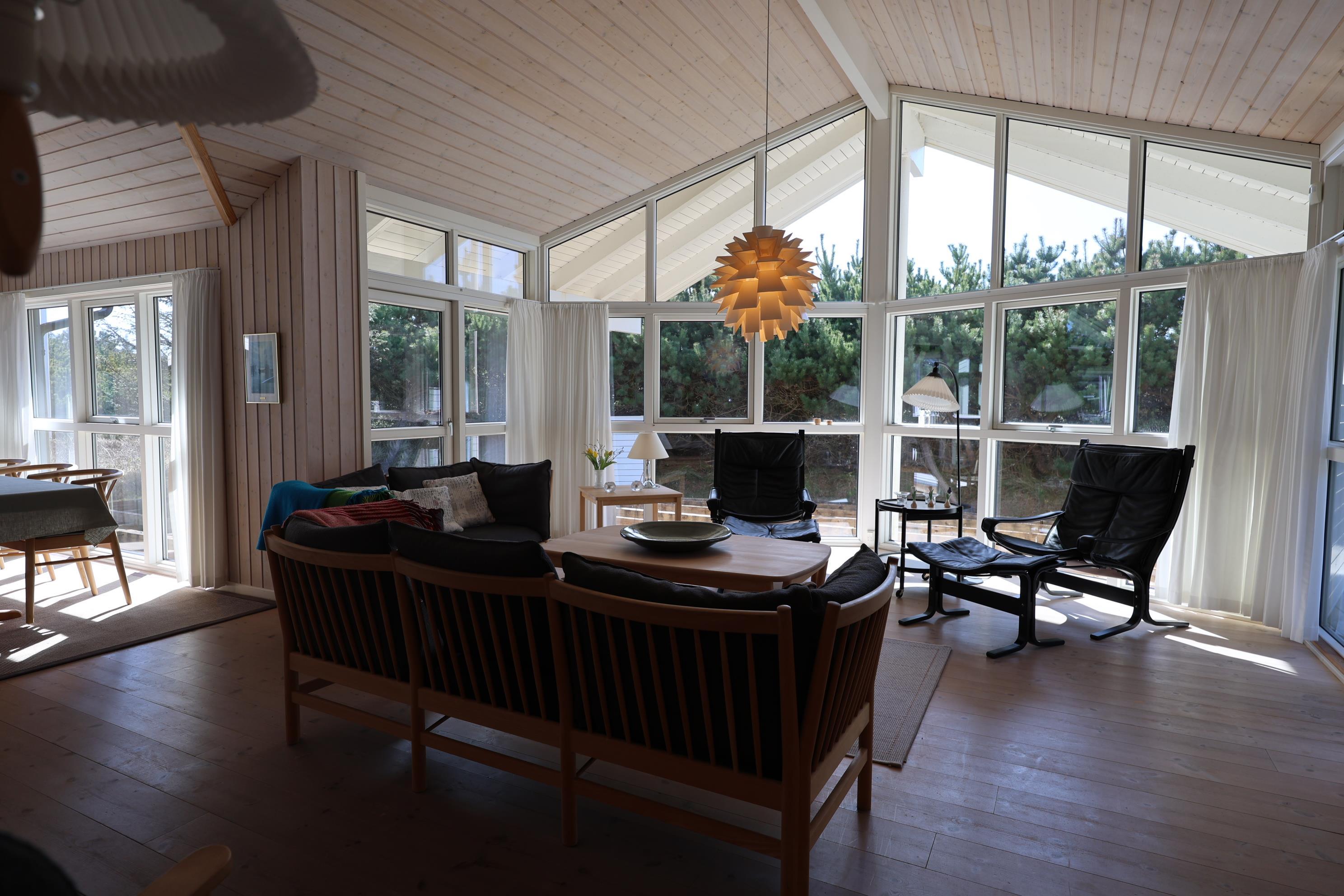 Husets hjerte er den hyggelige stue med brændeovn, komfortable møbler og store vinduer, der giver et dejligt lysindfald. Her kan I slappe af efter en dag ved stranden, spille spil eller nyde aftensmaden i ro og mag.