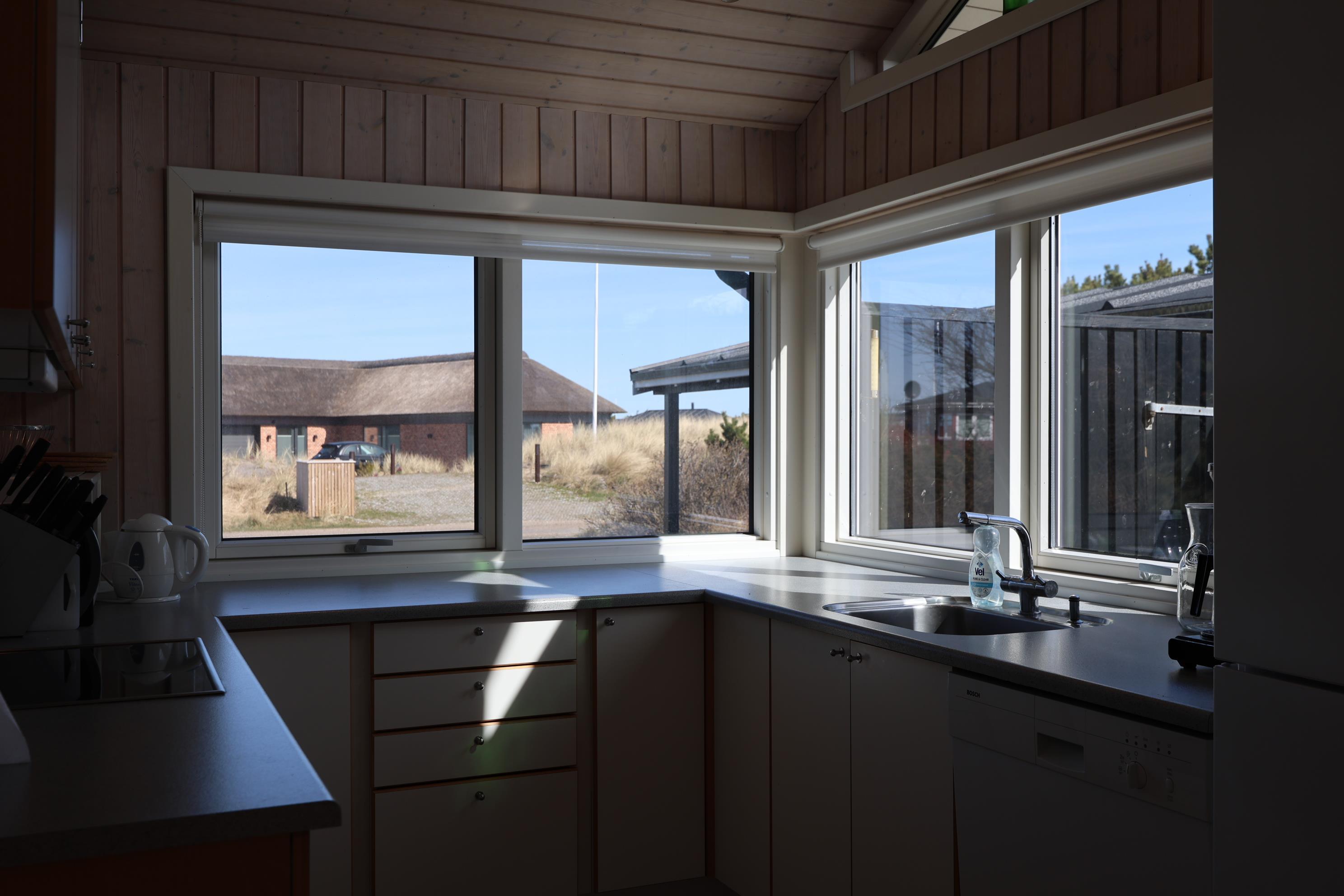 Det åbne køkken er praktisk indrettet og har alt, hvad I skal bruge til feriens måltider. Huset rummer 3 soveværelser med gode senge og skabsplads.