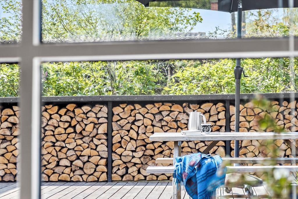 Fra stuen er der direkte udgang til stor ny, solrig og fantastisk terrasse. Den er åben, men skærmet mod indkig, så her kan udelivet nydes i fulde drag. Falder duggen, har terrassen også en stor overdækket del, hvor aftenerne kan nydes. Uanset hvordan sommervejret arter sig, kan man opholde sig på terrassen. Selv forårs- og efterårssolen kan nydes her, og en stor del af jeres ferie vil blive tilbragt her, mens der tilberedes mad på gasgrillen.