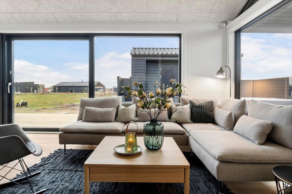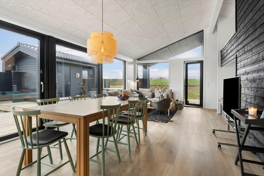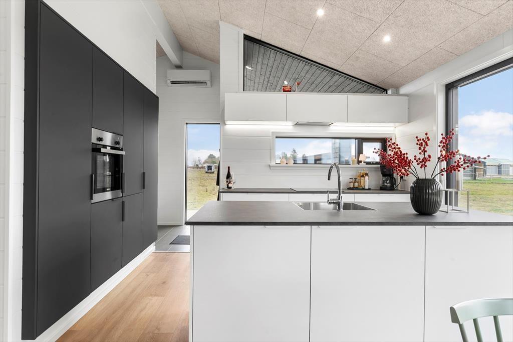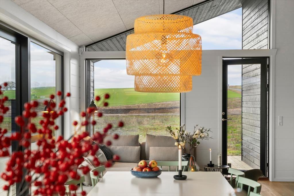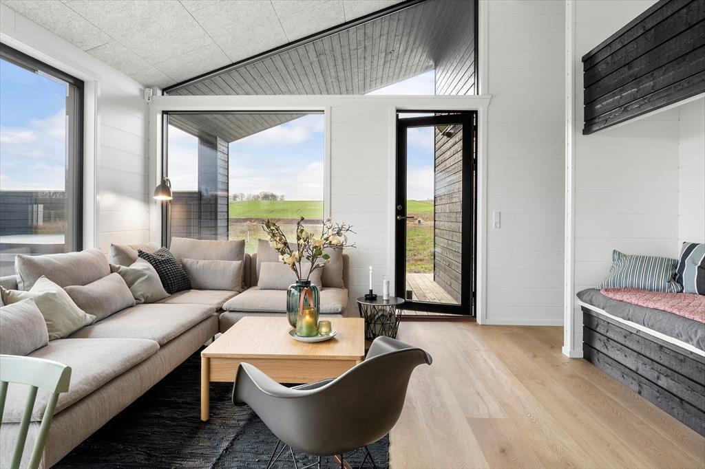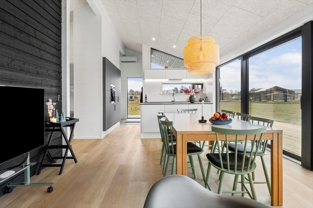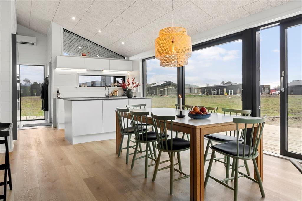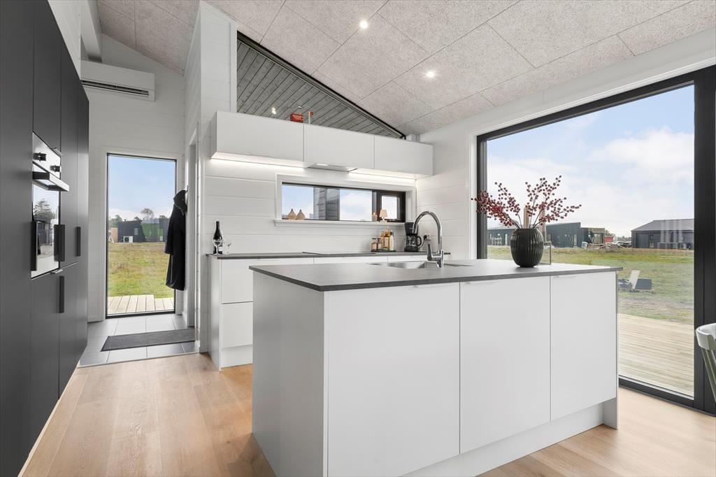 Når du træder indenfor, bliver du mødt af et lyst og stilfuldt indrettet sommerhus, der er skabt til fællesskab. Det store, åbne køkken-alrum er hjemmets hjerte – her kan I lave mad sammen, dække op til lange middage og hygge jer med brætspil og gode samtaler. Store vinduespartier lukker lyset ind og skaber en naturlig forbindelse til terrassen, så I kan nyde ude- og indelivet på samme tid.