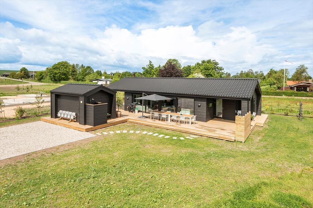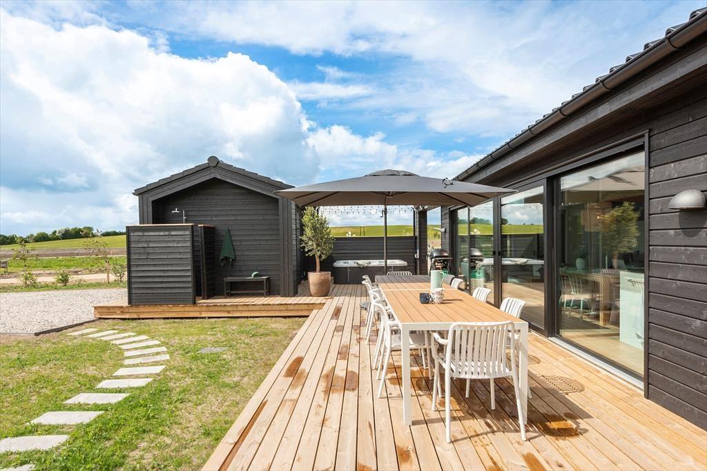 Feriens bedste øjeblikke venter under åben himmel! Den store træterrasse bliver hurtigt jeres samlingspunkt – her er plads til både afslapning og leg. Fyr op i grillen og nyd en dejlig middag sammen, mens børnene hygger sig med gynge eller boldspil i haven.