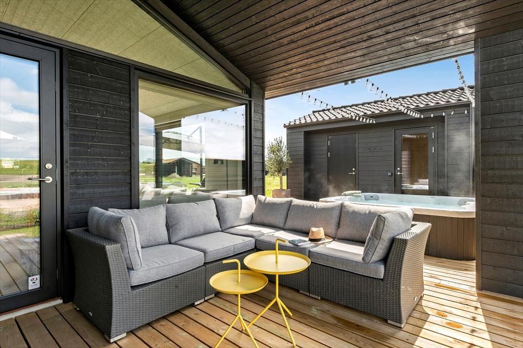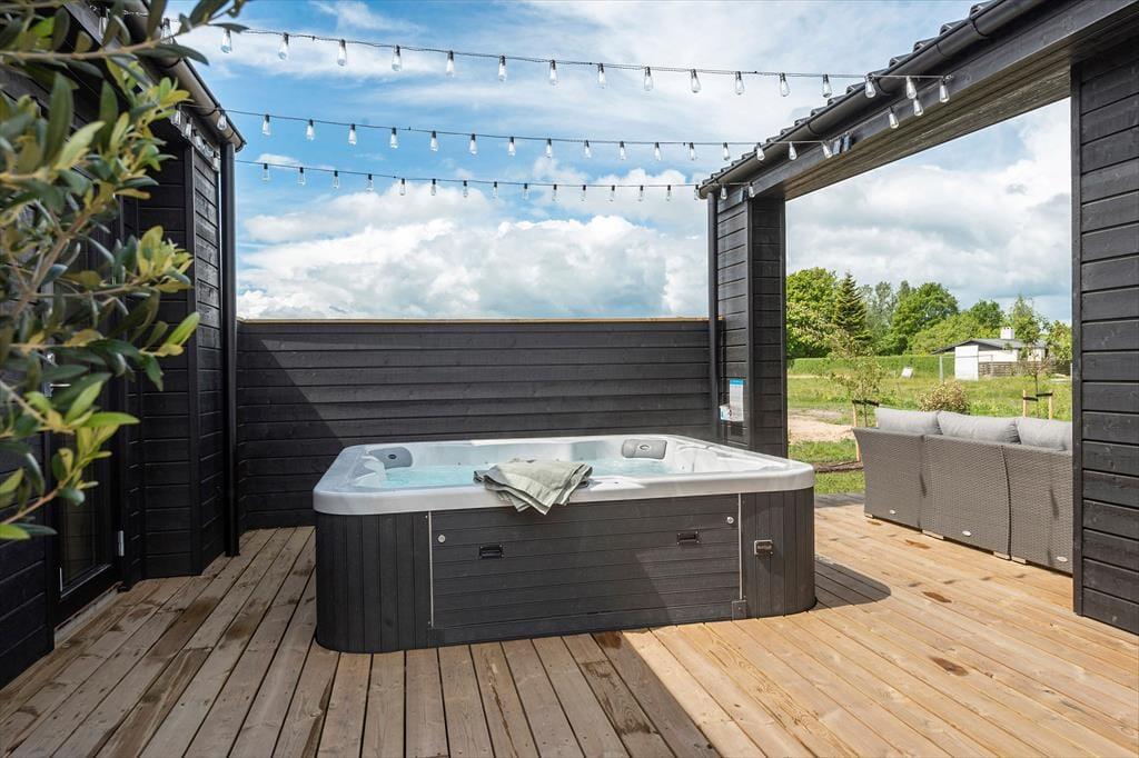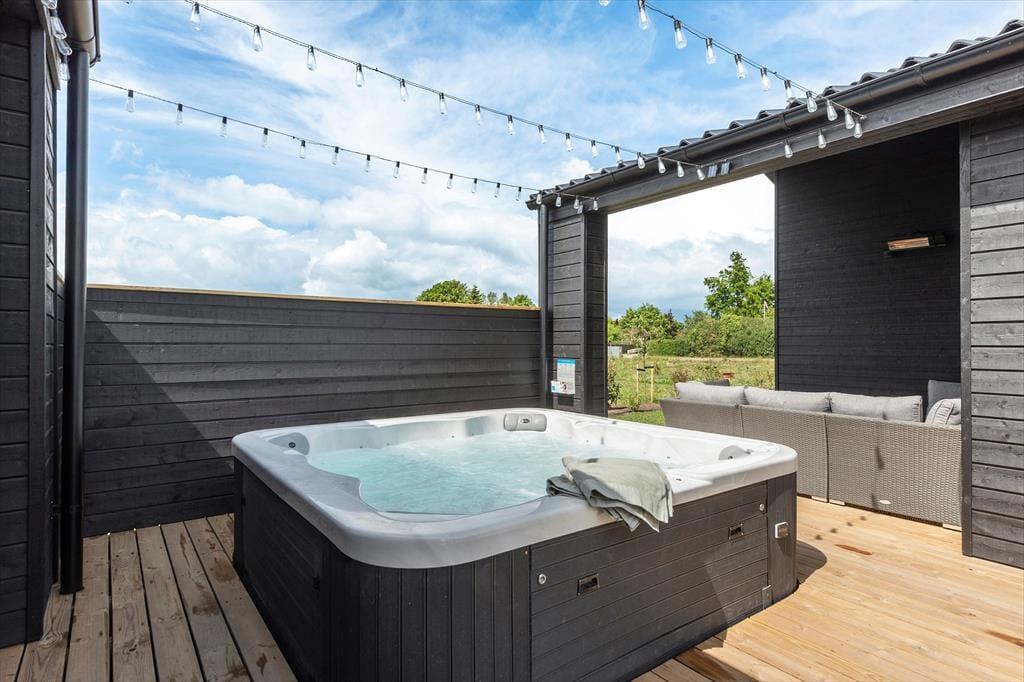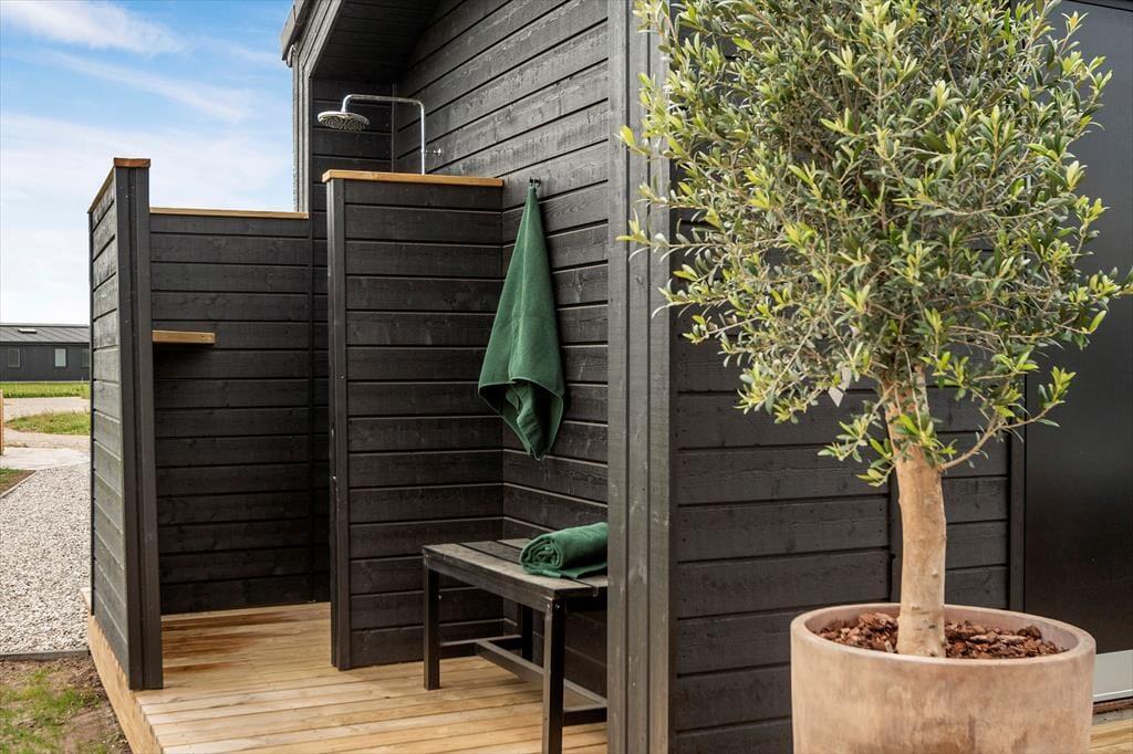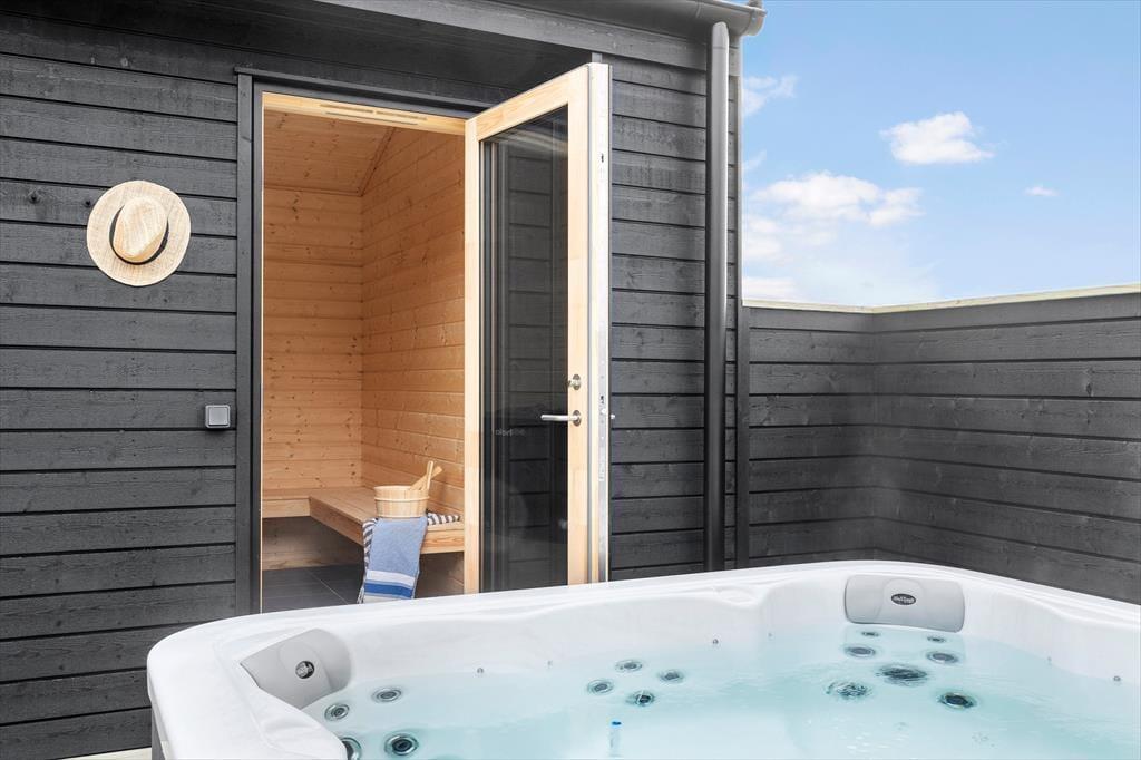 Spa-området er noget helt særligt og giver ferien et ekstra strejf af luksus. Her kan I synke ned i den varme spa med plads til 7 personer eller nyde varmen i saunaen efter en frisk gåtur til stranden. Start dagen med en forfriskende udendørsbruser og lad kroppen vågne blidt op, eller hop i spaen under en stjerneklar aftenhimmel – ren velvære for alle sanser.