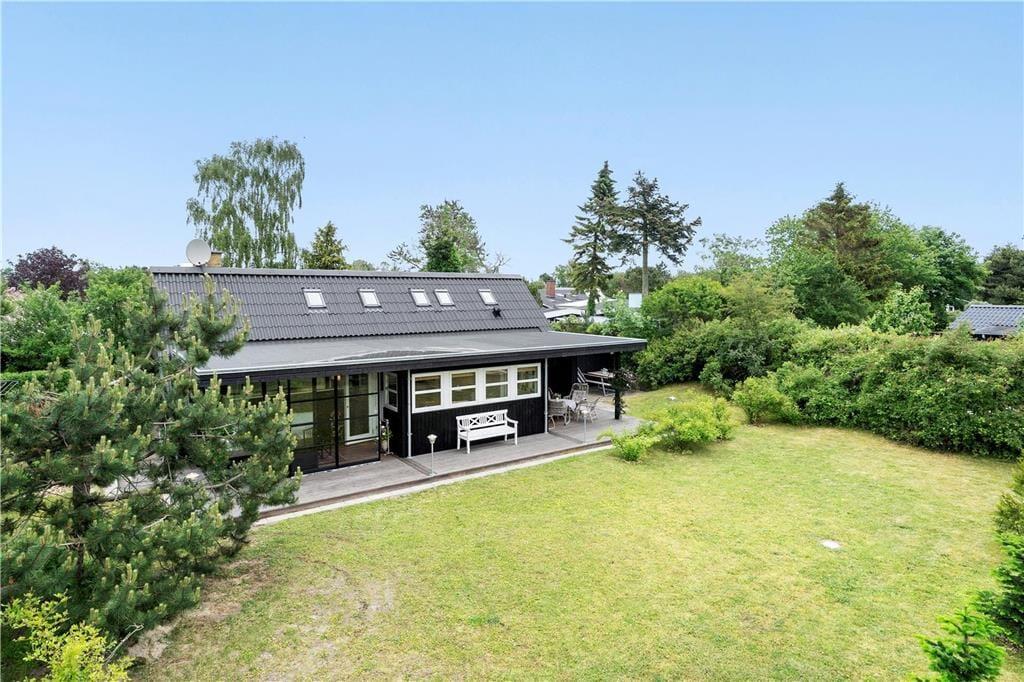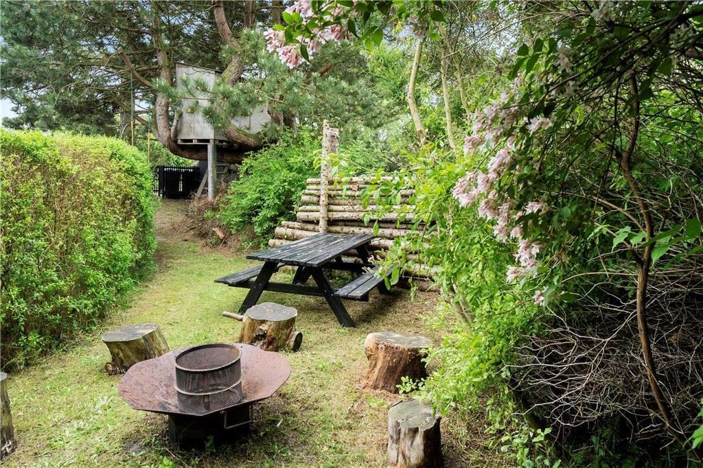 Sommerhuset ligger dejligt ugeneret på lille stikvej. I haven finder man et rigtig hyggeligt bålsted som børnene vil elske. Her er to overdækkede terrasse og en åben terrasse, så der er mulighed for både sol og skygge. Her er der havemøbler og parasol. Der er sørget for gynger og sandkasse til børnene.