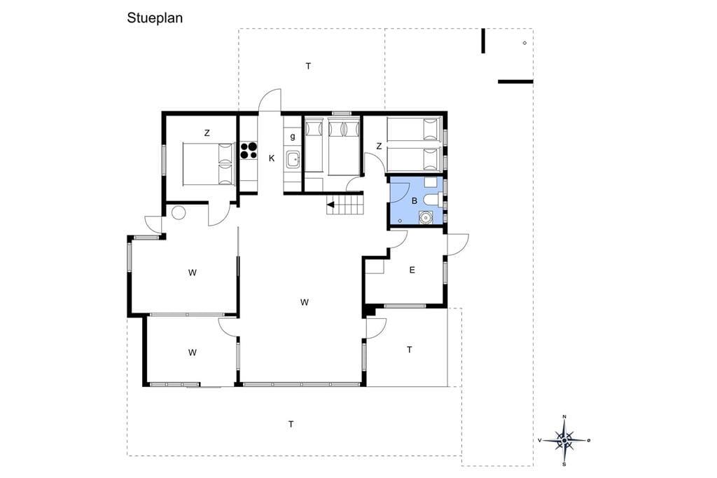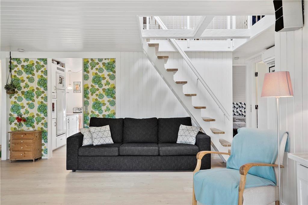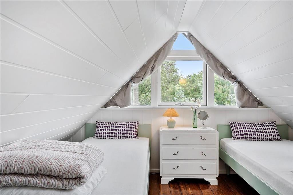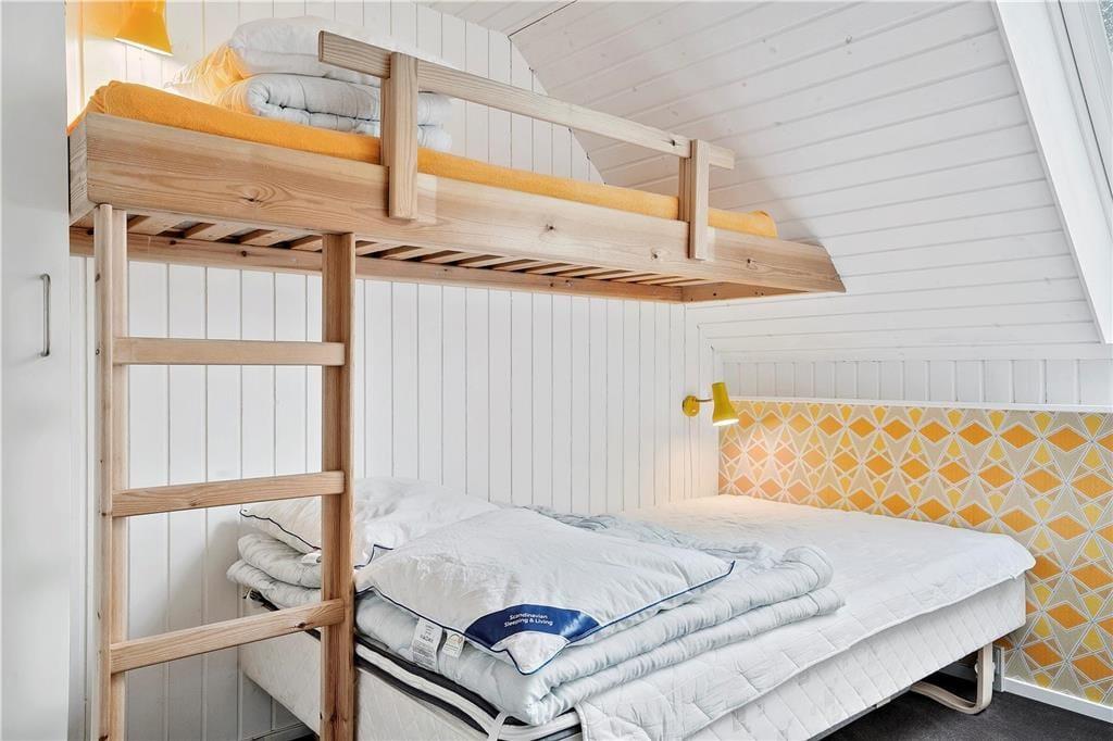 Sommerhuset er nyrenoveret og er i to etager med i alt fire soverum. Et soverum med 1 dobbeltseng, et soverum med en 3/4-seng og køje, et soverum med 2 enkeltsenge. På 1. sal findes huset fjerde soverum med 2 enkeltsenge og en barneseng.