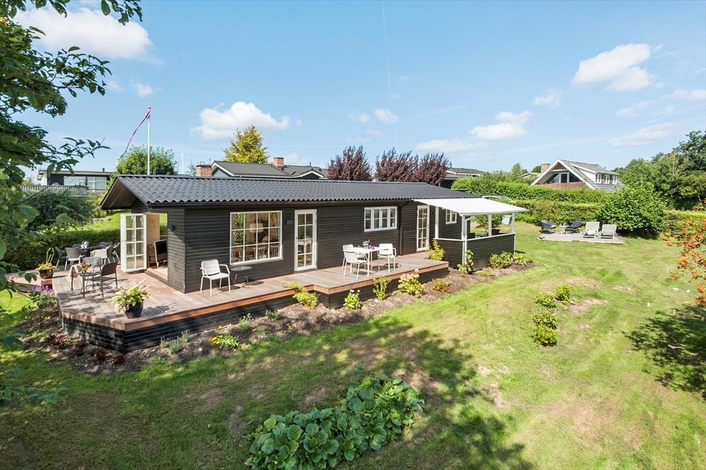 Fra stuen og spiseområdet går du direkte ud på en dejlig træterrasse der går hele vejen rundt om huset, og her kan du nyde de lange sommeraftener i alle dens faser. Huset har et stort, dejligt alrum, hvor hele familien kan samles, og gode værelser, hvor du kan trække dig tilbage og nyde freden.