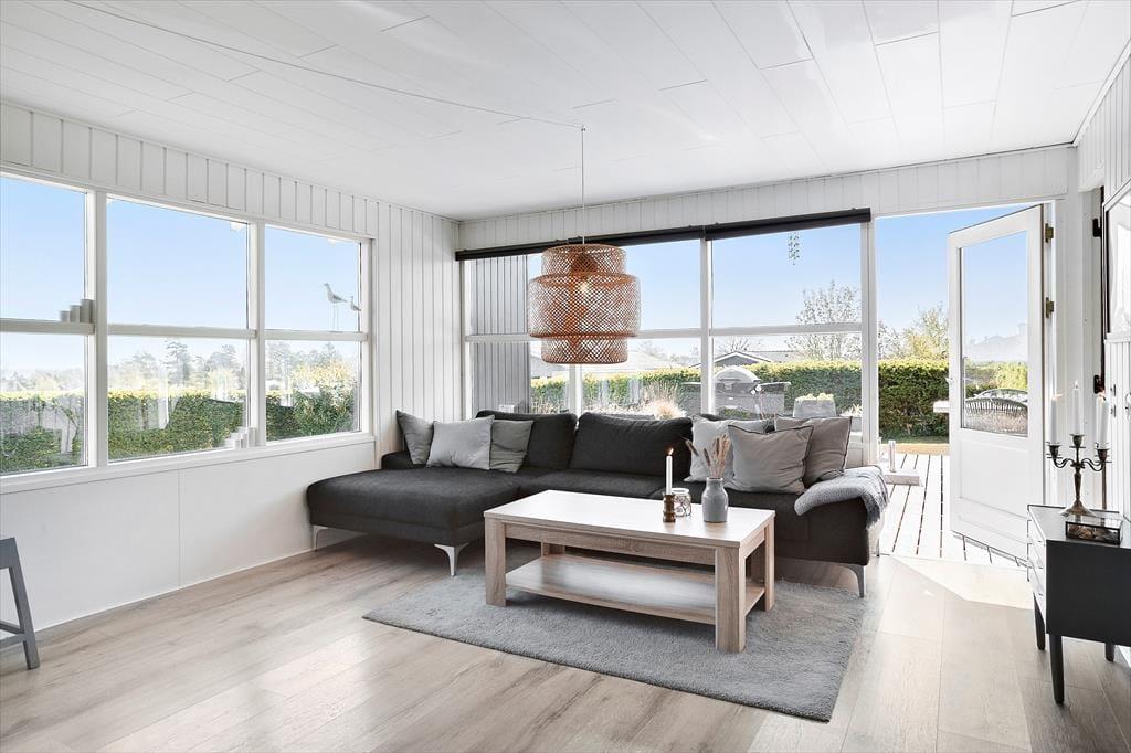Køkkenet har fin spiseplads med plads til alle og åben adgang til stuen. I stuen vil I helt sikkert samles i sofagruppen til brætspil, hygge og kvalitetstid med hinanden. Der er gode hvile/siddepladser til jer alle og selvfølgelig TV med TV-pakke med danske, tyske, svenske og norske kanaler + Chromecast til streaming af egne streamingtjenester.