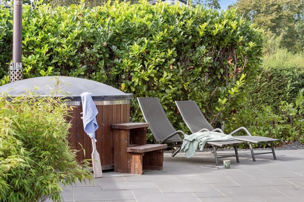 Til de køligere aftener er der rig mulighed for at tænde op i vildmarksbadet og hygge sig. Der er desuden også en udendørs bruser.