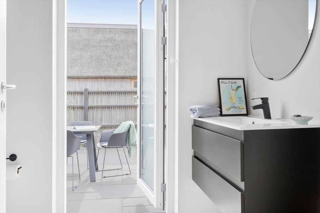 Der er to super flotte badeværelser i huset, begge med toilet og bruser. I det ene badeværelse er der desuden flot sauna. I bryggerset er der vaskemaskine + tørretumbler, så I kan få vasket badehåndklæderne efter en lang dag på stranden.