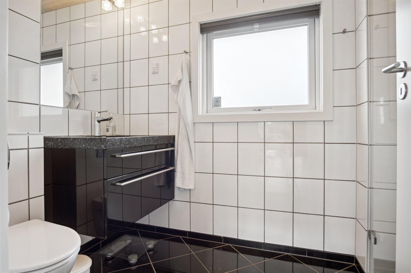 Der er 2 badeværelser (det ene badeværelse findes i et anneks) med bruseniche og 2 toiletter. Der er gulvvarme på 1 badeværelse.