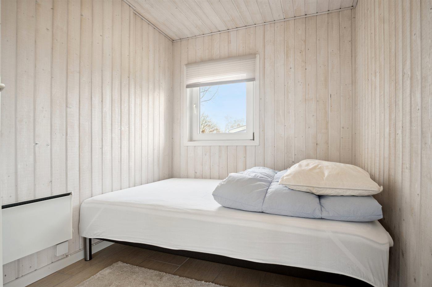 Der er i alt 2 soveværelser. Sovepladserne fordeler sig på: 2 sovepladser i dobbeltseng. 2 sovepladser i enkeltsenge. 2 sovepladser på madrasser. 2 af disse sovepladser befinder sig på husets hems. Der er gulvvarme i 2 af soveværelserne.
