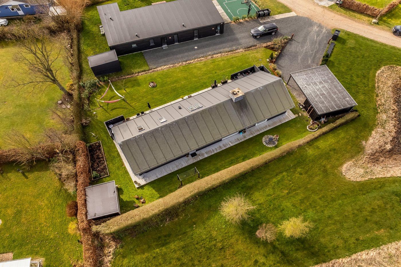 Ferieboligen er beliggende på en 820 m² stor havegrund. Der er 300 m til havet. Der er 2000 m til fjorden. Der er en sø i en afstand af 25 m. Nærmeste forretning er beliggende i en afstand af 1000 m. Der er en golfbane i en afstand af 5000 m. Til ferieboligen hører åbent terrasseareal. Desuden er der overdækket terrasse. Der ligger en legeplads i en afstand af 300 m. Bålsted. Shelter. Udendørs bruser. På lune aftener sørger en udendørs pejs for hyggelig stemning. Grill til rådighed. Der er carport til rådighed. Der er installeret stik til opladning af elbil. Type 2 stik. Med 11 kW ladeeffekt. Parkering ved ferieboligen.