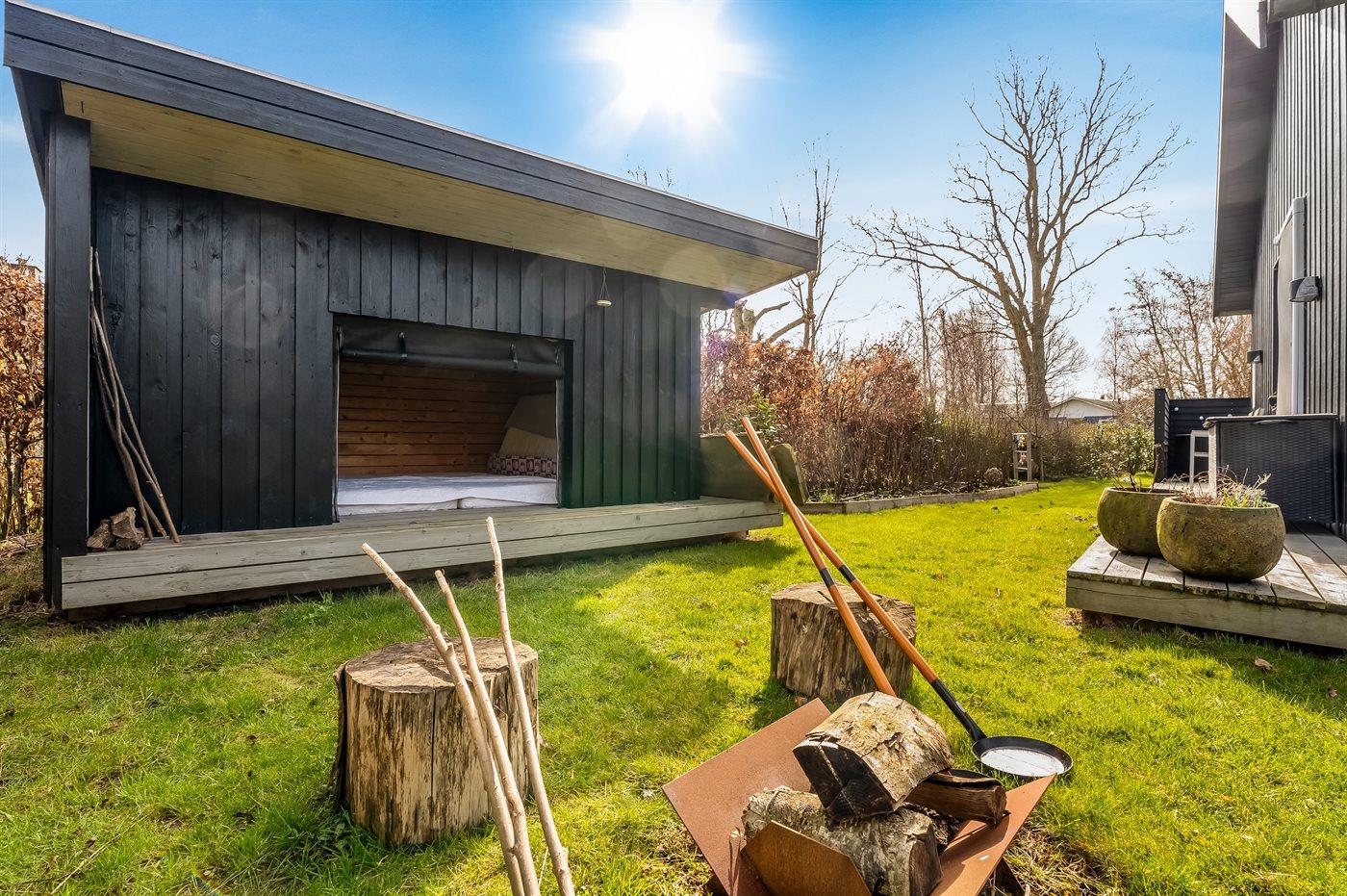 Flot sommerhus nær Saksild strand med spabad og udsigt over søen for afslappende ferie.