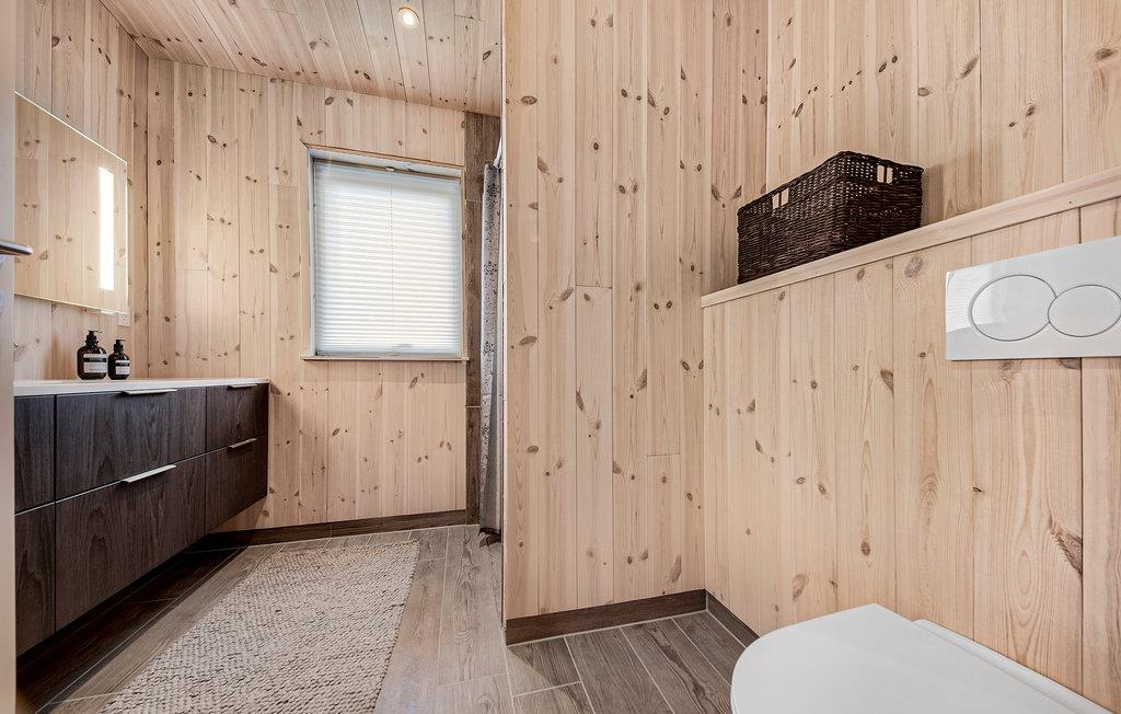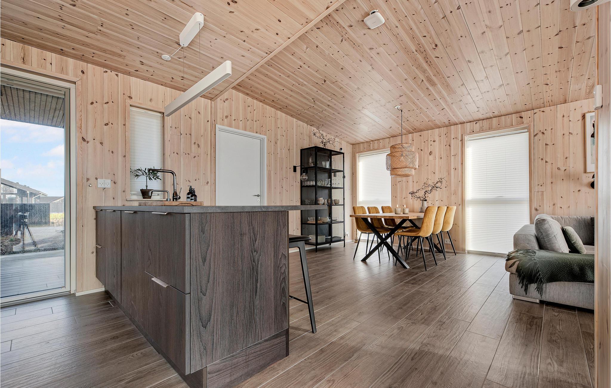 Hold en behagelig ferie sammen med jeres familie i dette skønne feriehus, som med sin træbeklædning skaber en varm og hyggelig atmosfære. Nyd tiden i den lyse stue, som bliver jeres naturlige samlingspunkt. Her kan I slappe af sammen i sofaen, se jeres yndlingsfilm, lave mad sammen eller spille brætspil. Når vejret er varmt, kan I benytte den store solterrasse og dase på de komfortable havemøbler, se hestene græsse på nabofolden eller tilberede en lækker grillmiddag og nyde udendørslivet sammen.