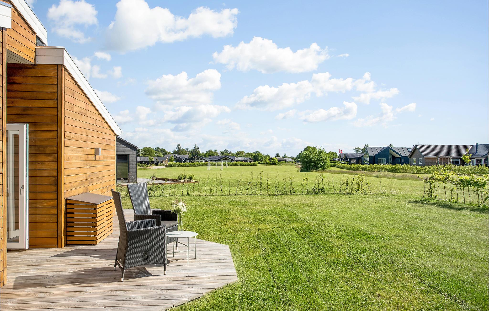 Skønt sommerhus tæt på Saksild Strand med vildmarksbad og bæredygtigt design.