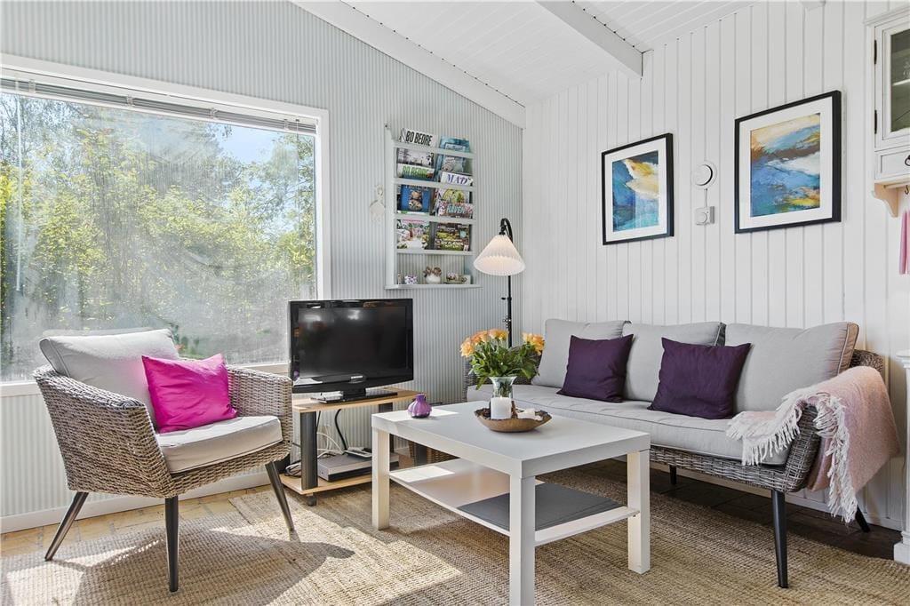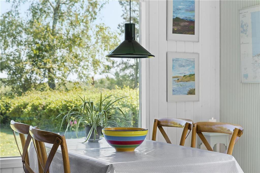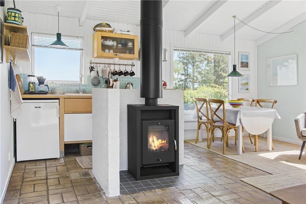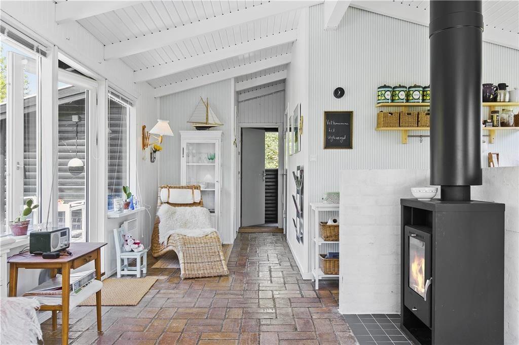 Feriehuset er indrettet med kombineret køkken og opholdsstue. Køkken med keramisk komfur og køleskab med frostboks. Smagfuld indrettet opholdsstue med udgang til terrasse, spisekrog, brændeovn og tv med Waoo TV pakke. Badeværelse med bruseniche, vaskemaskine og gulvvarme . Soveværelse med 2 enkeltsenge. Desuden anneks med en sovesofa. Huset opvarmes med varmepumpe, brændeovn og elvarme.