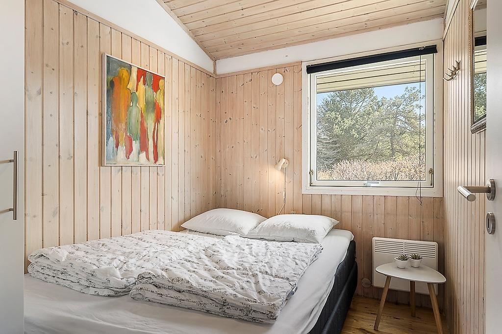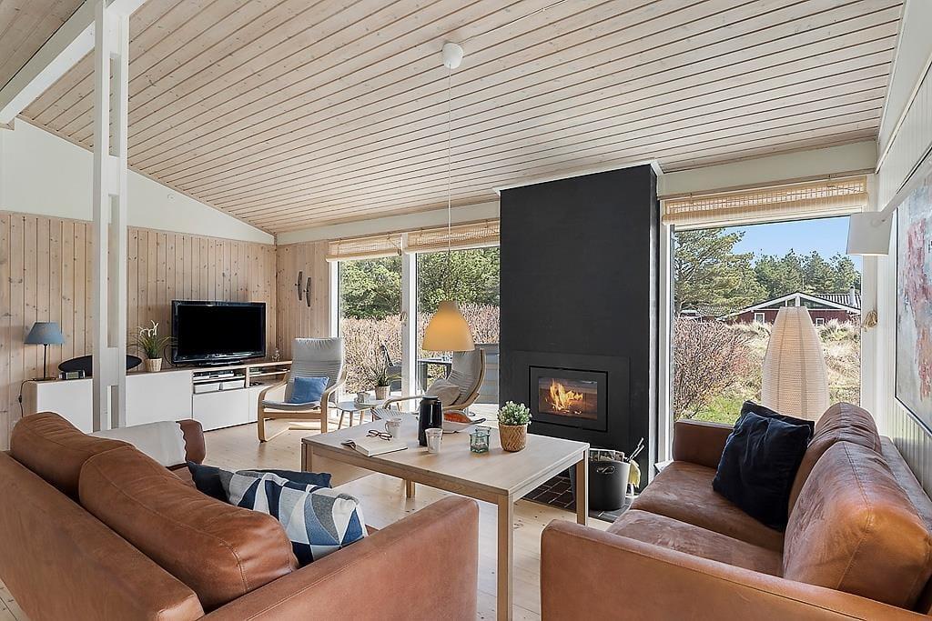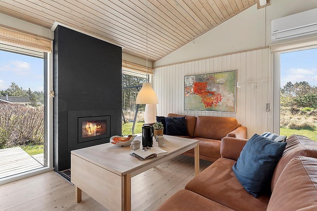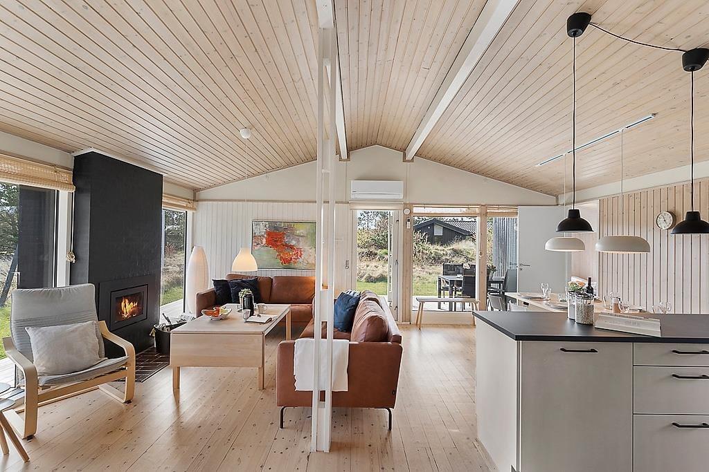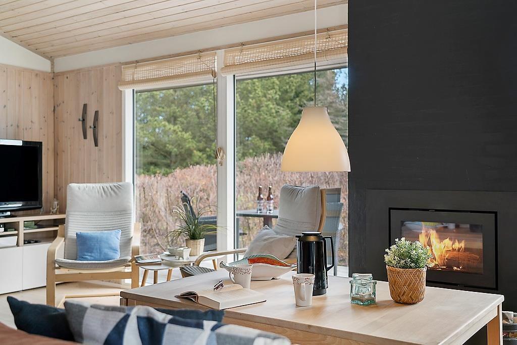 Når du træder ind i sommerhuset, mødes du af lyse, indbydende værelser, der skaber en varm og hyggelig atmosfære. Den åbne planløsning binder stuen og køkkenet sammen, og med store vinduespartier strømmer sollyset ind og giver et dejligt lys i hele rummet. Den smukke brændeovn er en klar favorit til de køligere aftener, hvor du kan nyde en god bog eller bare sidde og slappe af med en varm drik. De rummelige værelser giver mulighed for, at hele familien kan føle sig hjemme, og den afslappende atmosfære gør det til et perfekt sted at lade op efter en dag med aktiviteter.