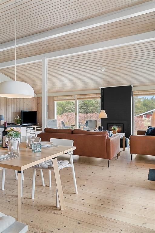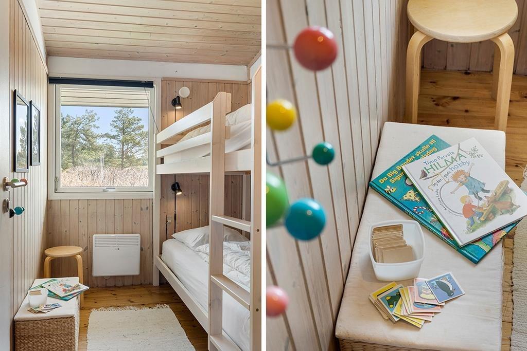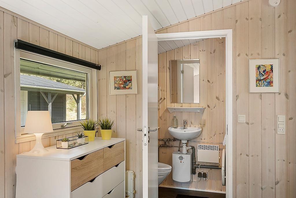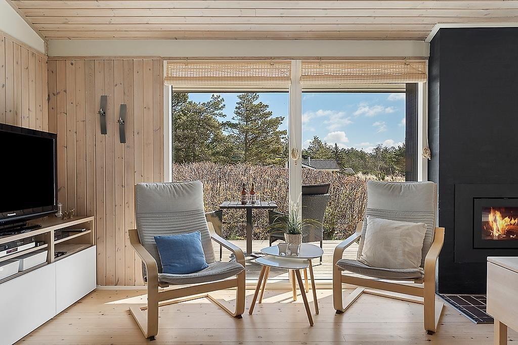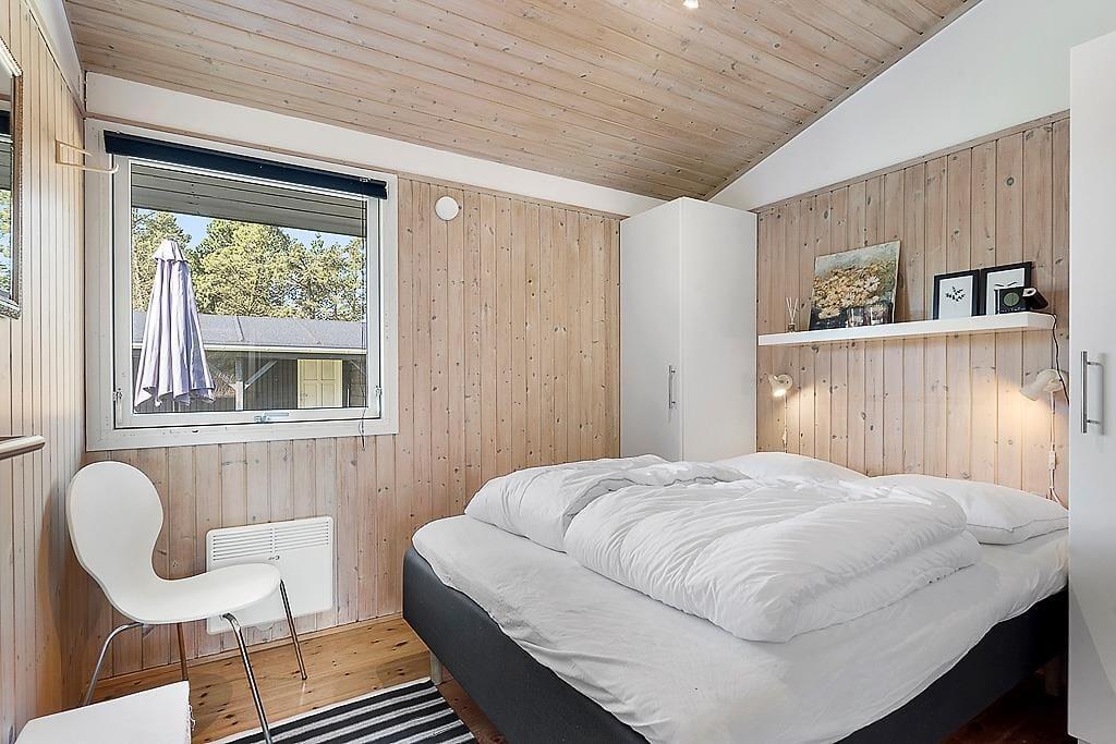 Når du træder ind i sommerhuset, mødes du af lyse, indbydende værelser, der skaber en varm og hyggelig atmosfære. Den åbne planløsning binder stuen og køkkenet sammen, og med store vinduespartier strømmer sollyset ind og giver et dejligt lys i hele rummet. Den smukke brændeovn er en klar favorit til de køligere aftener, hvor du kan nyde en god bog eller bare sidde og slappe af med en varm drik. De rummelige værelser giver mulighed for, at hele familien kan føle sig hjemme, og den afslappende atmosfære gør det til et perfekt sted at lade op efter en dag med aktiviteter.