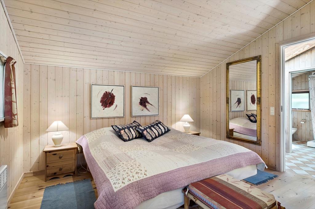 Allerede når du træder indenfor, mærker du den særlige varme og charme, der kendetegner et klassisk dansk sommerhus. De lyse trævægge, det skrå loft og brændeovnen i stuen skaber den helt rette stemning for afslapning – uanset om det er morgenkaffen, der nydes i ro og mag, eller aftentimerne, hvor I samles med spil, grin og hyggesnak. Derudover har huset både soveværelser og et hyggeligt anneks, der gør det oplagt at tage hele familien med – eller måske nyde nogle stille dage for to. Badeværelset er lyst og funktionelt, og alt i alt er huset indrettet med tanke på både komfort og den afslappede sommerhusstil, vi alle længes efter i ferien.