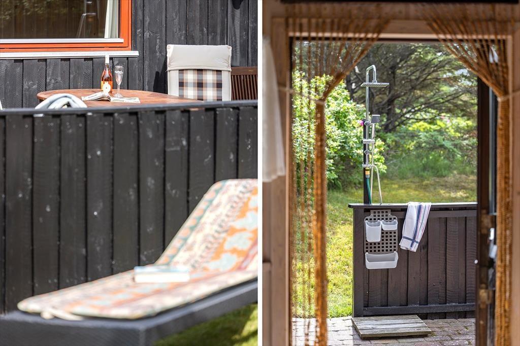 Sommerhuset ligger på en helt særlig grund – ugeneret, grøn og fuld af stemning. Her får du virkelig følelsen af at være midt i naturen. Grunden er omkranset af træer og beplantning, så du kan nyde ferielivet i fred og ro. Terrassen, der ligger i direkte forbindelse med huset, er et perfekt sted til både morgenmad under åben himmel og lange, lune sommeraftener med grill og gode vine. På de varme dage kan du finde en plads i solen, og skulle vejret vise sig fra en køligere side, er der stadig mulighed for at pakke sig ind i tæpper og nyde den friske luft med en varm kop i hånden. For børnene er der god plads at boltre sig. På naturgrunden er det let at finde både leg og eventyr lige uden for døren.