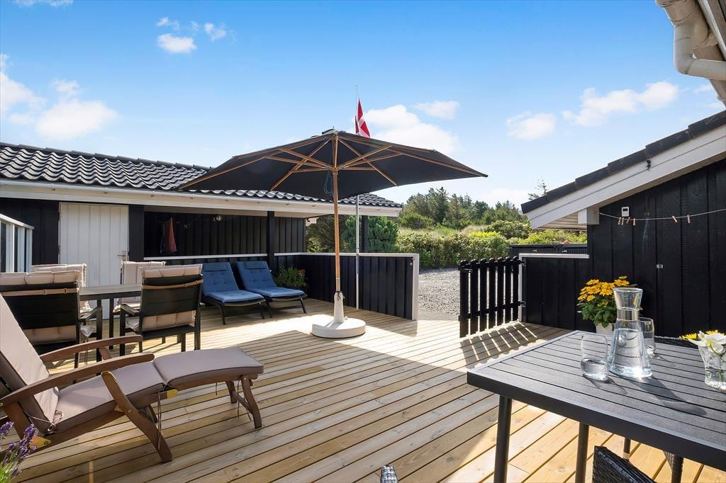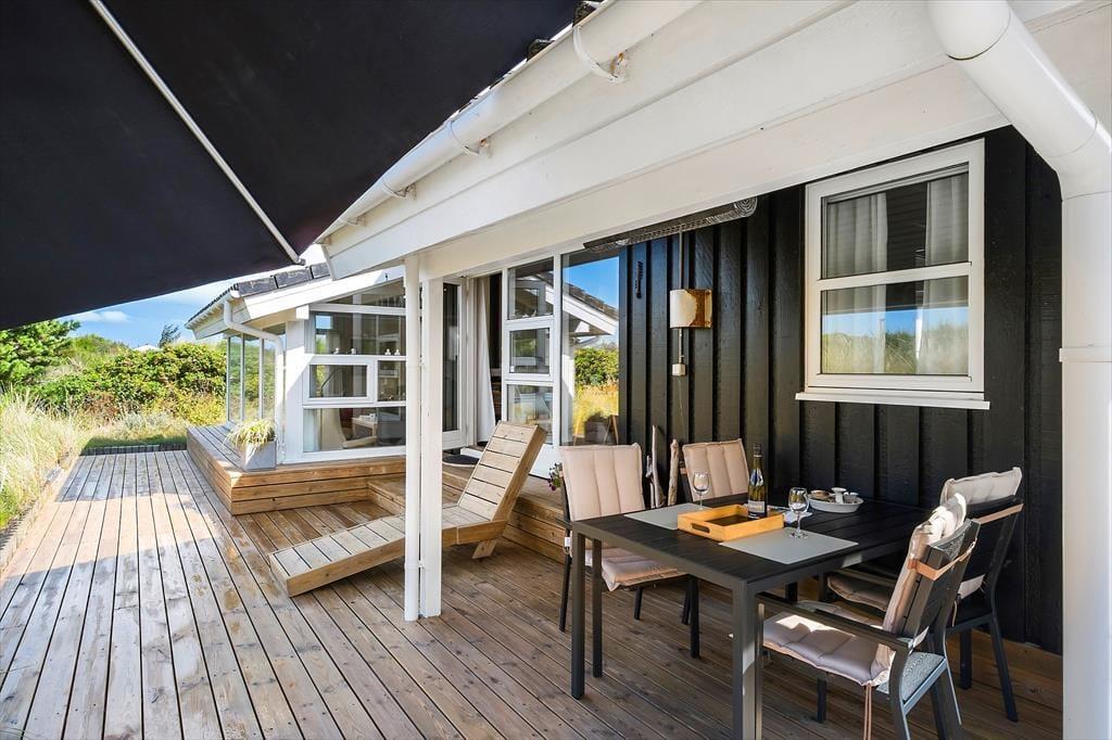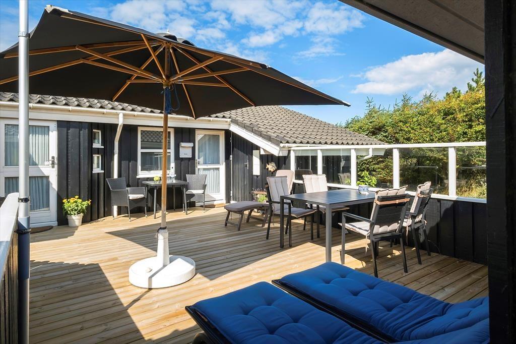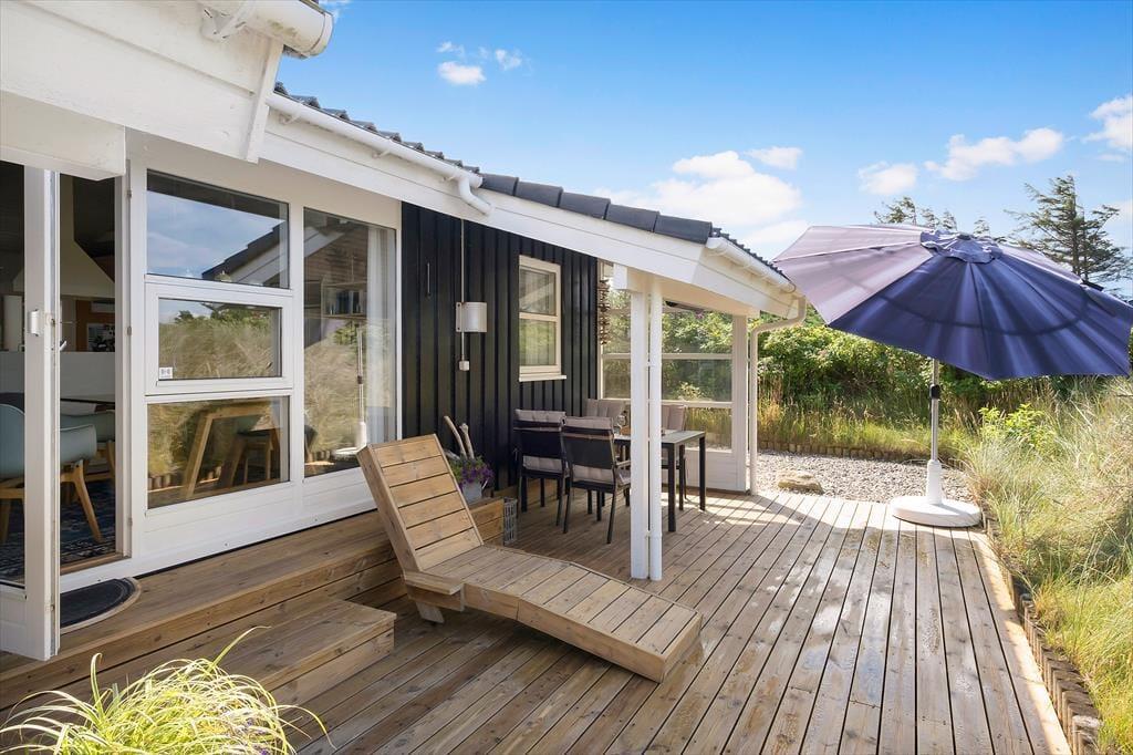 Herude kan du virkelig leve ferielivet under åben himmel. Sommerhuset byder på et dejligt terrassemiljø med flere gode siddepladser, så du altid kan finde et sted med sol eller skygge alt efter behov. Den omkringliggende natur giver en følelse af fred og privatliv, og det er svært ikke at blive grebet af roen, når du sidder med en kølig drik og lytter til fuglene. Tænd op i grillen om aftenen og lad dagen glide over i hyggelige timer med god mad og godt selskab – her er rammerne helt perfekte.