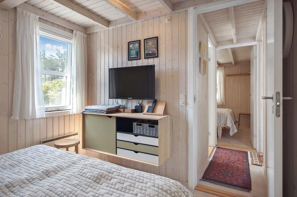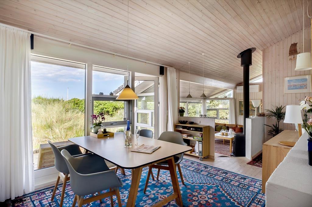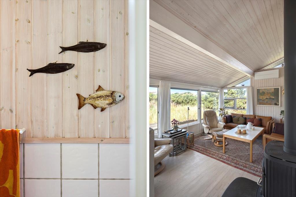 Indenfor møder du en lys og venlig indretning, hvor hyggen er i højsædet. Stuen er hjertet i huset, og her kan I samles om måltiderne, tænde op i brændeovnen på kølige dage eller bare slappe af med en god bog i sofaen. Det åbne køkken gør det nemt at være sammen, selv når der skal kokkereres, og du har et godt udgangspunkt for at nyde ferien i roligt tempo. Huset emmer af afslappet sommerhusstemning, der får skuldrene til at sænke sig med det samme, og det er oplagt at sætte sig til rette og nyde en langsom morgen med kaffe og hjemmebag.