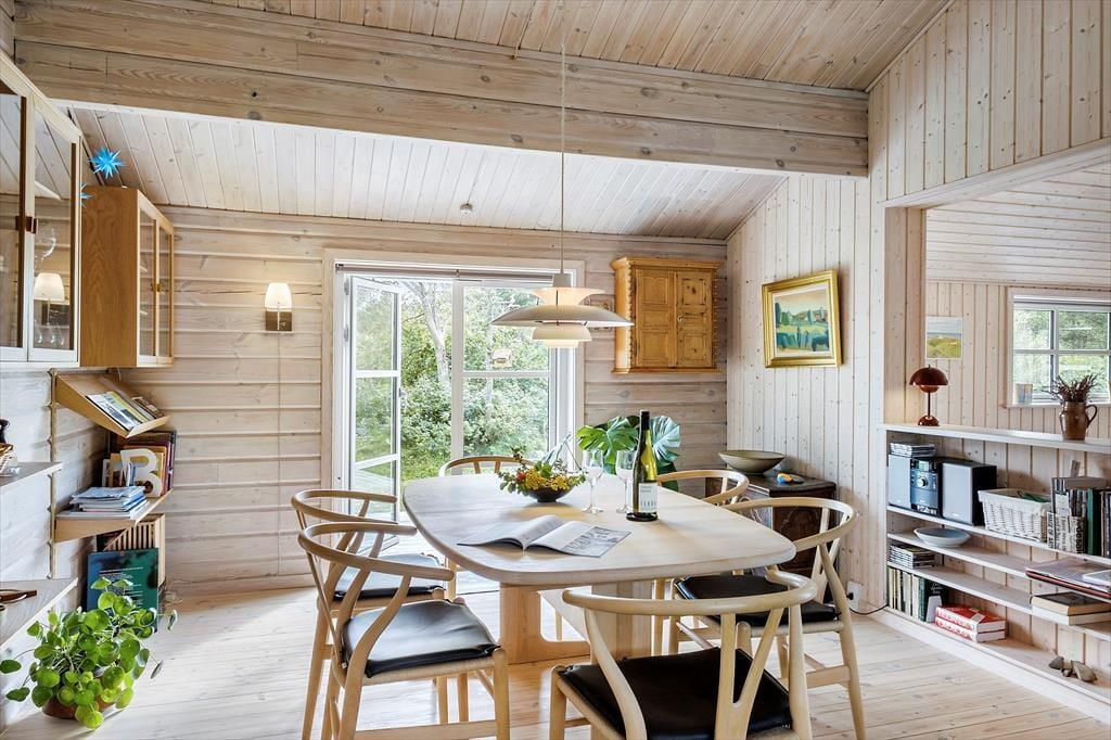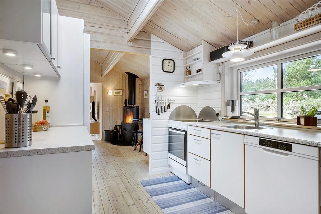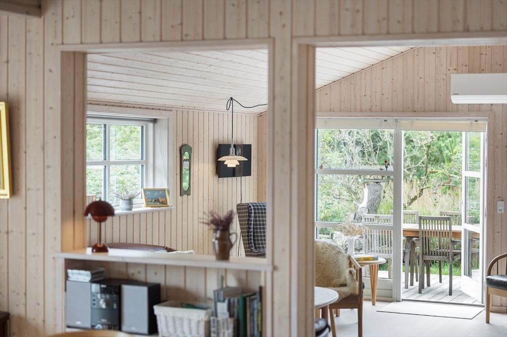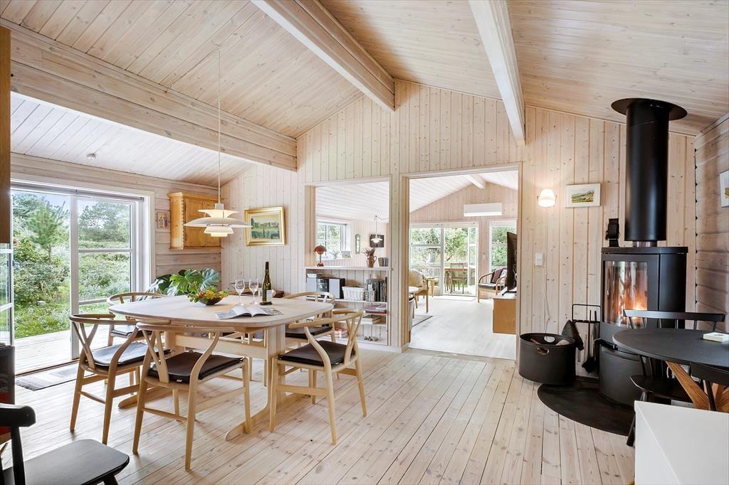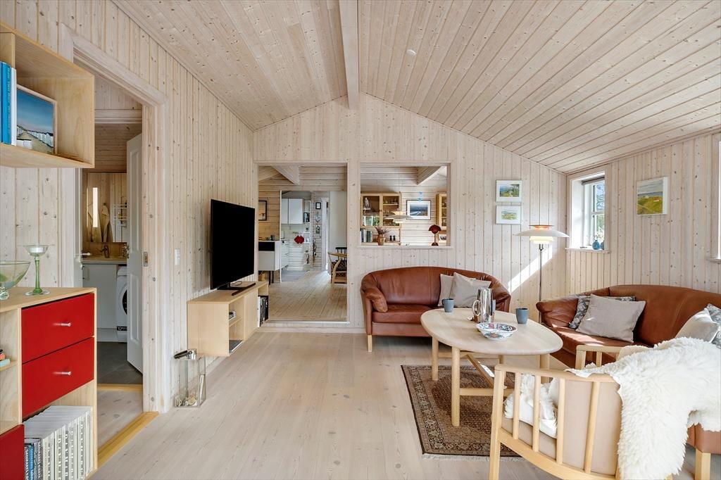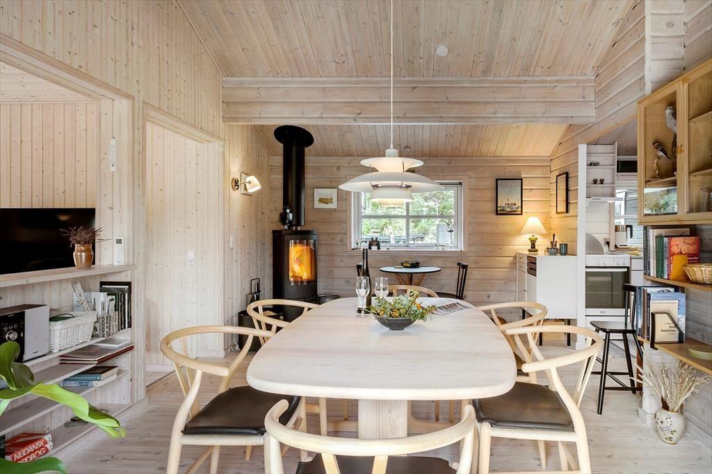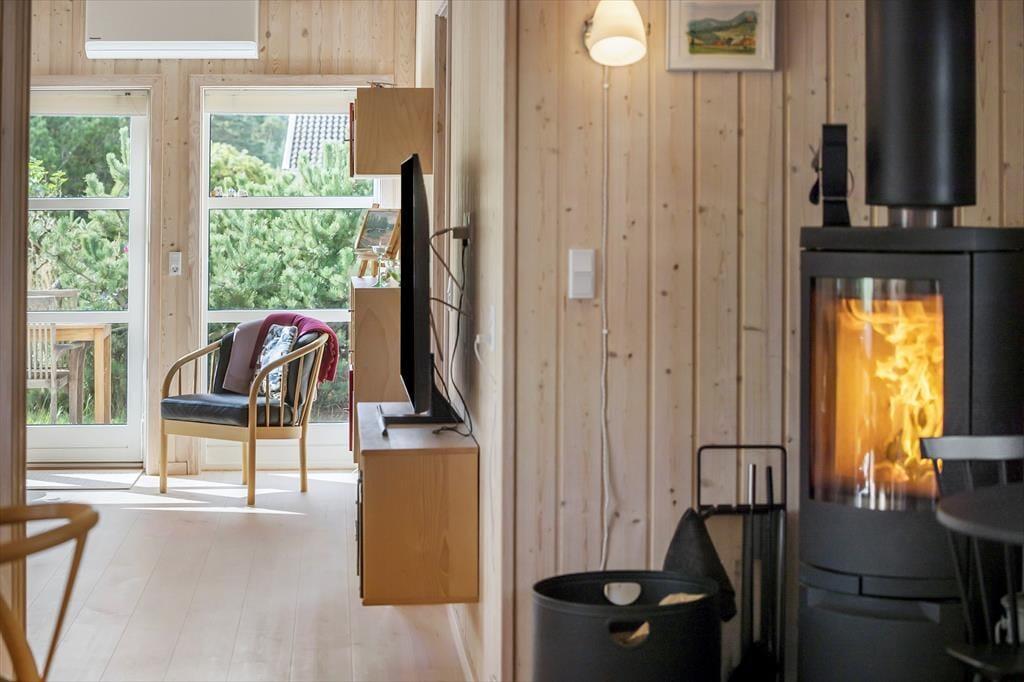 Indendørs venter en lys og hyggelig atmosfære, der hurtigt får dig til at falde til ro. Sommerhuset byder på gode og rummelige opholdsrum, hvor hele familien kan samles til måltider, spil eller hygge foran brændeovnen, mens flammerne knitrer. Køkkenet er åbent og en naturlig del af opholdsmiljøet, så madlavning bliver en fælles aktivitet, og imens kan snakken gå på kryds og tværs af rummet. Når dagen går på hæld, er det rart at kunne trække sig tilbage til husets soveværelser, hvor freden sænker sig, og du hurtigt kan lade op til en ny feriedag. Her er rammen sat for en ferie, hvor nærvær og hygge er i centrum.
