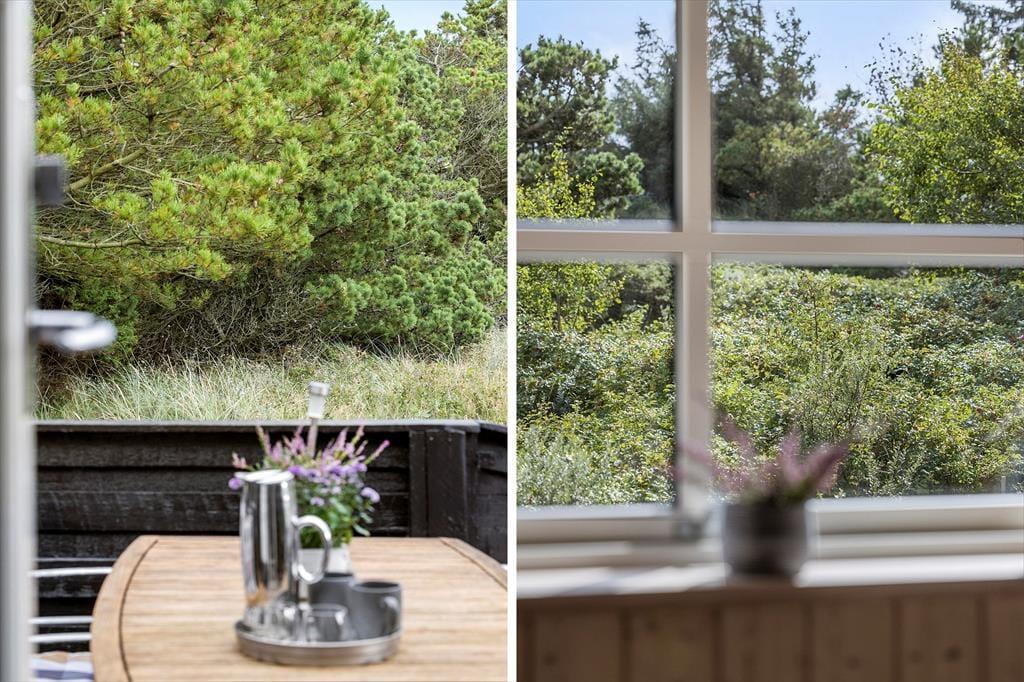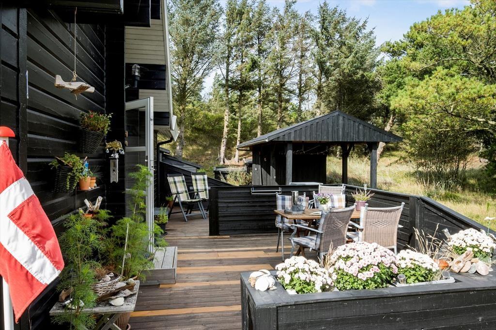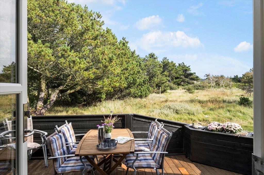 Udenfor er terrassen et af husets absolutte højdepunkter. Den breder sig hele vejen rundt, så du altid kan finde en god plads – i morgensolen mod øst, i middagsvarmen mod syd eller i aftensolen mod vest. Når vejret viser sig fra sin bedste side, kan du dække op til frokost i det fri, finde en god stol og nyde feriebogen eller tænde grillen, mens duften af mad blander sig med havluften. Omgivelserne er grønne og fredelige, og fuglesangen er en fast følgesvend, når du tilbringer timerne under åben himmel.