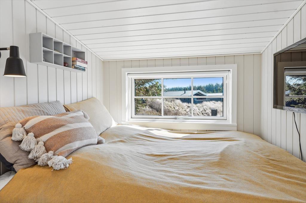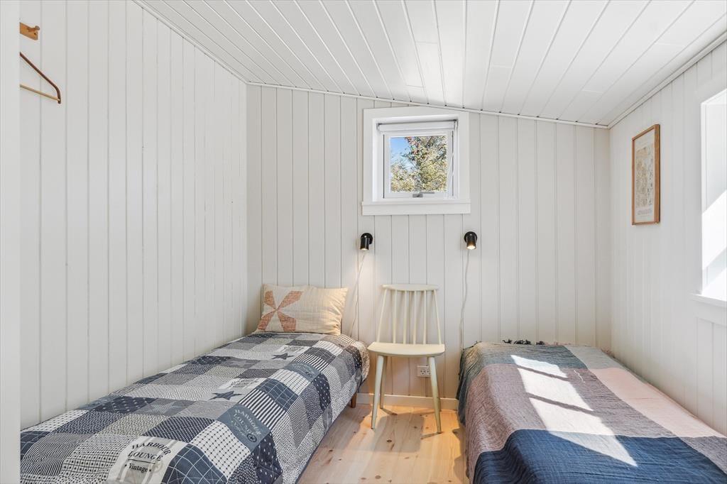 Indenfor mødes du af en varm atmosfære, hvor den moderne renovering smukt spiller sammen med husets sommerhuscharme. Det åbne opholdsrum danner hjertet i huset med en dejlig stueafdeling, hvor du kan finde ro med en god bog, se en film eller hygge foran brændeovnen, når aftenerne bliver kølige. Køkkenet ligger i forlængelse af stuen, så du nemt kan være en del af samværet, mens du tilbereder feriens måltider. Overalt er indretningen præget af lyse materialer og en afslappet stil, der indbyder til ægte feriehygge – uanset om I er to eller har børnene med.
