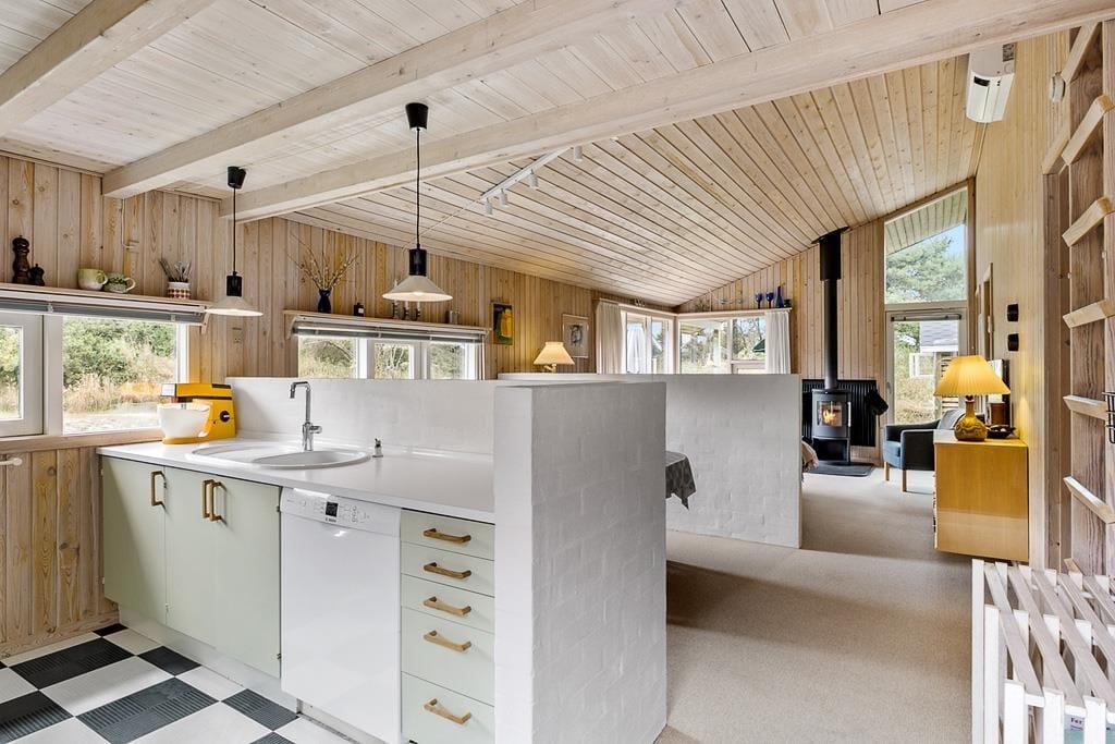 Når I træder indenfor i dette sommerhus, vil I straks mærke den hyggelige og indbydende stemning. Den lyse indretning og de store vinduespartier, som giver et dejligt lysindfald, bidrager til en behagelig atmosfære, hvor man straks føler sig hjemme. Opholdsrummet er hjertet i huset, hvor I kan samles omkring brændeovnen på kølige aftener eller nyde et måltid ved spisebordet, mens I beundrer udsigten til marehalmen udenfor. Køkkenet er åbent og veludstyret, så I nemt kan tilberede lækre måltider med lokale råvarer fra området. Med et soveværelse og en hyggelig alkove er der plads til både par og små familier, som ønsker en afslappet ferie med fokus på hygge og nærvær.
