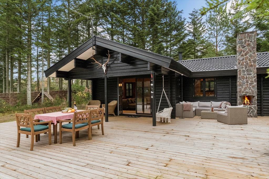 Terrassen er sommerhusets hjerte om sommeren – her kan I nyde dagens første kop kaffe under åben himmel og tilbringe afslappende timer i solen. Terrassen er både stor og delvist overdækket, så I altid kan finde skygge eller ly, uanset hvordan vejret arter sig. Om aftenen kan I tænde op i grillen og sætte jer til rette, mens I nyder maden og hinandens selskab. Den store terrasse indbyder til lange dage under åben himmel, og børnene kan lege frit omkring på det lukkede terrasseområde.