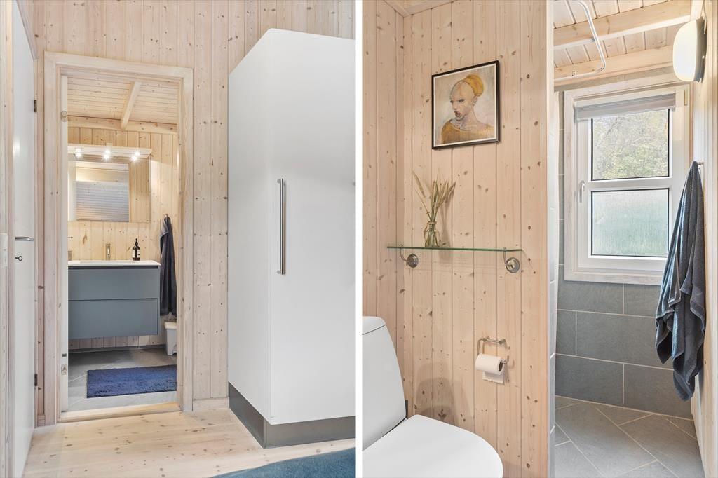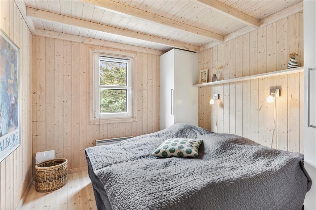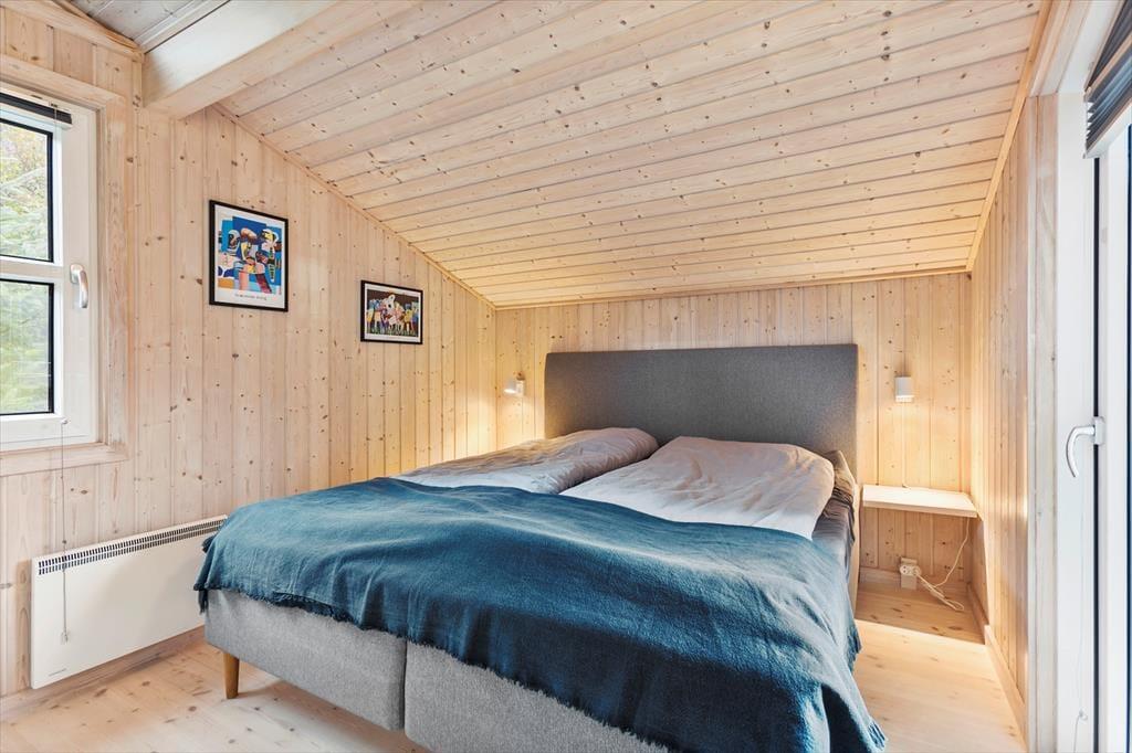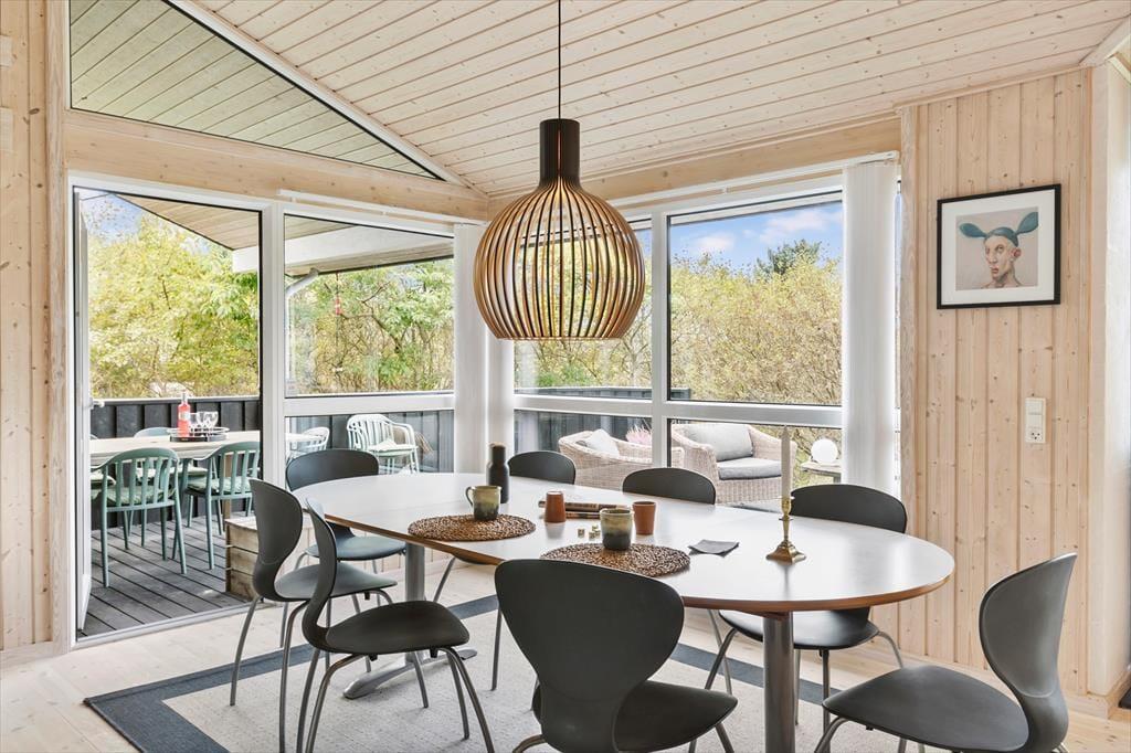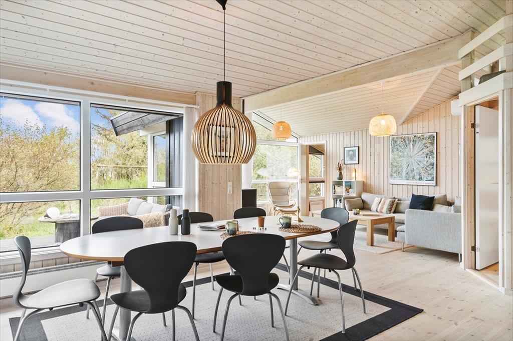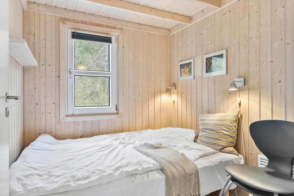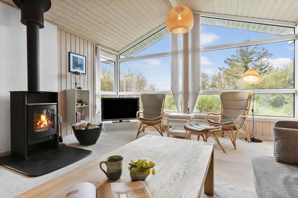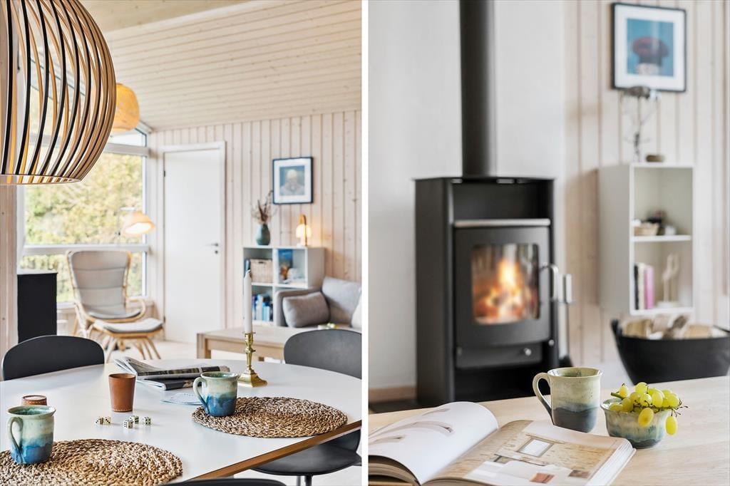 Sommerhusets indretning er både lys og venlig, og der er kælet for detaljerne i de rummelige opholdsrum. Stuen og det åbne køkken er det naturlige samlingspunkt, hvor du kan nyde måltiderne eller slappe af med en god bog ved brændeovnen. Huset har plads til seks personer fordelt på fire hyggelige soveværelser, som alle indbyder til en god nats søvn efter en dag fyldt med oplevelser. Køkkenet er godt udstyret, så du nemt kan tilberede alt fra morgenmad til middag i de hjemlige omgivelser. Derudover giver store vinduespartier dig en flot udsigt til de naturskønne omgivelser.