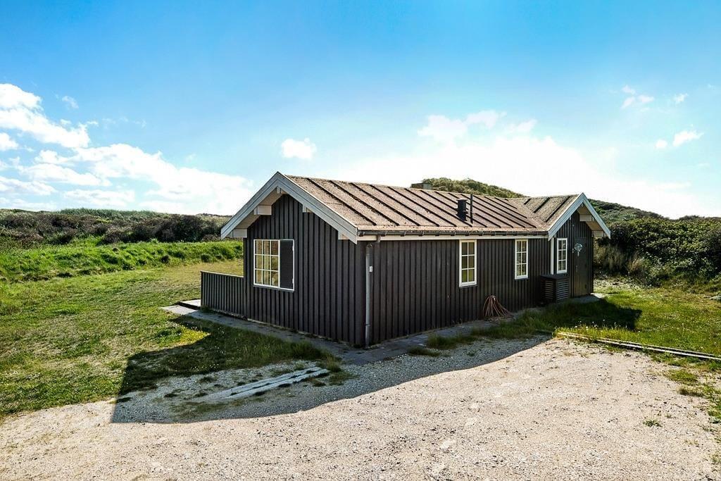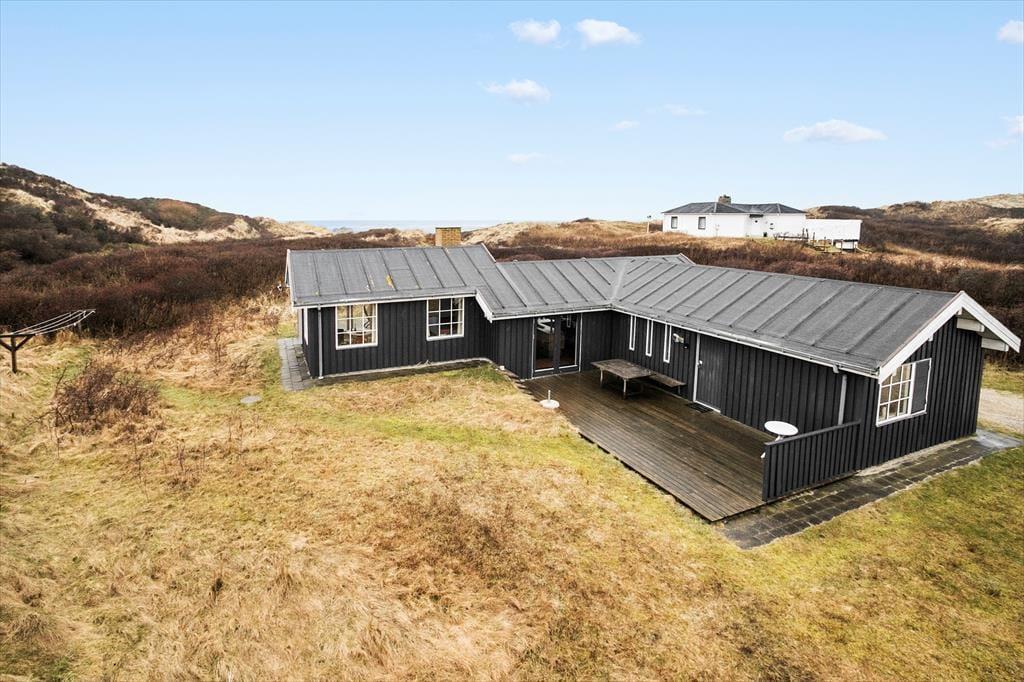Dette hus kan synes helt almindeligt, men det er det langt fra, da det er et af de tættest beliggende huse i første klitrække på de hvide sandstrande ved Saltum Strand.