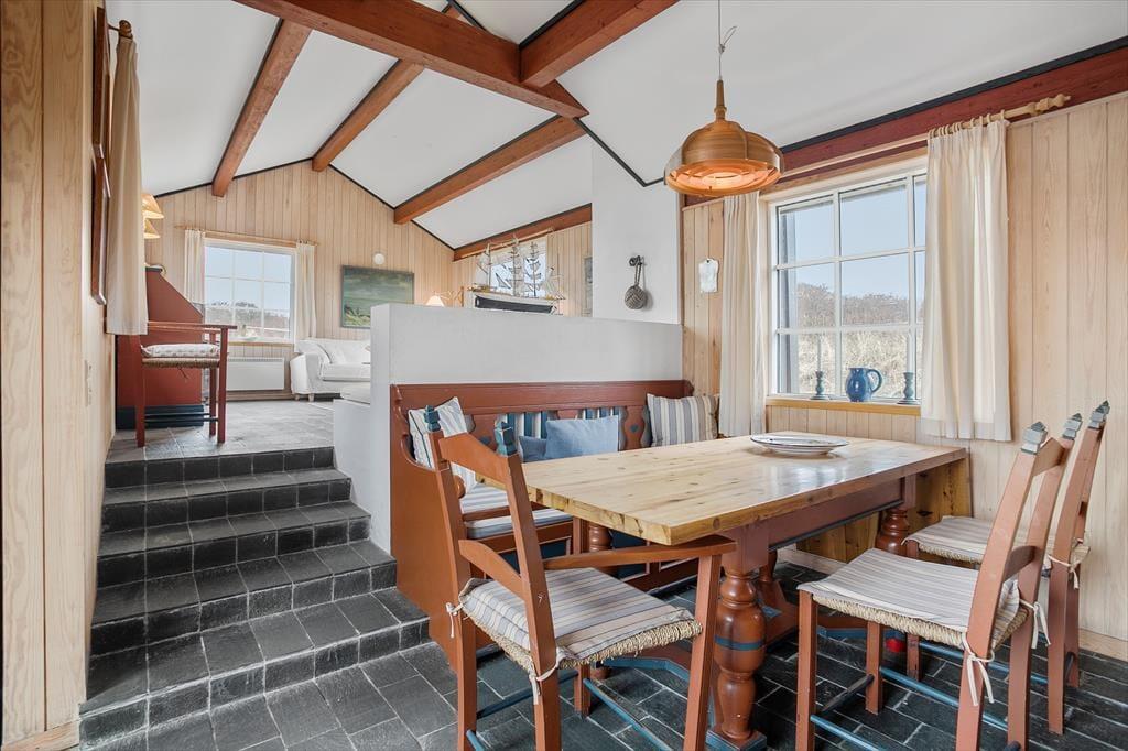 Huset er tegnet af en arkitekt, som udelukkende selv har brugt huset, og man mærker, at der er lagt vægt på kvalitet og funktionalitet i processen. I huset er der fine værelser samt hyggeligt køkken, som giver god plads til at være sammen under sin ferie. I stuen er en stor og hyggelig pejs, som familien kan samles omkring.