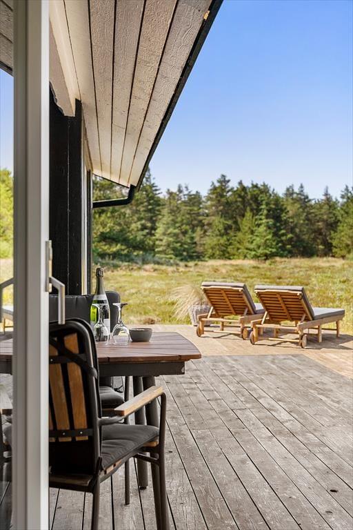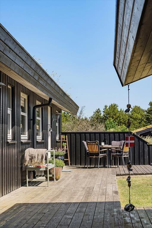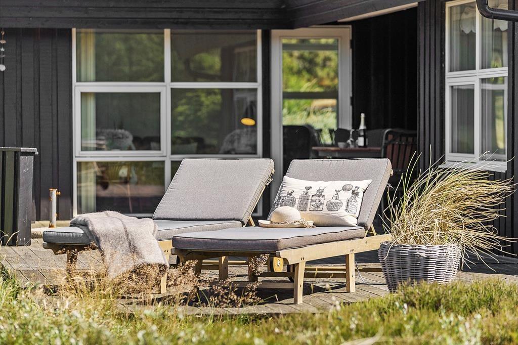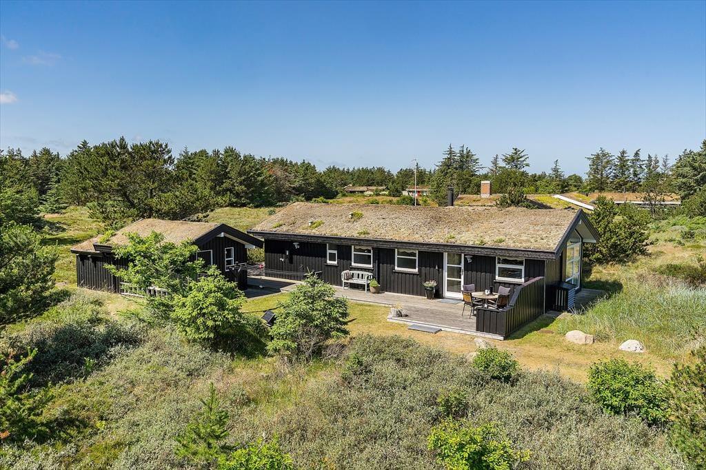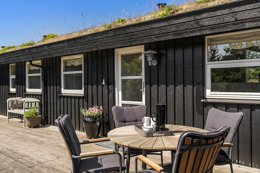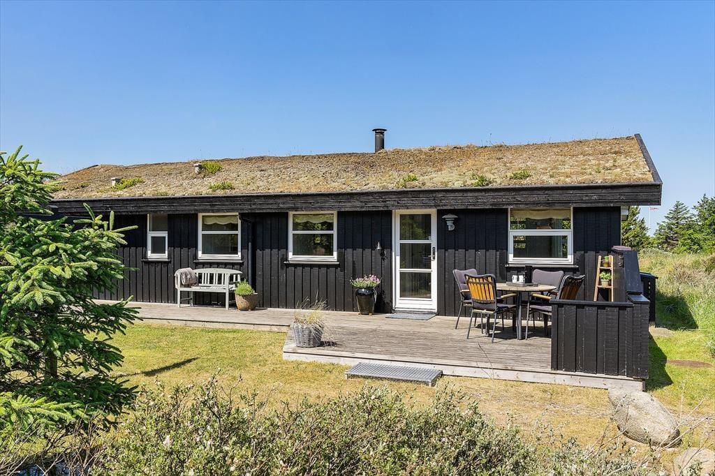 Sommerhuset ligger på en skøn naturgrund, hvor der er udsigt til den altid vekslende lyng som giver en skøn naturoplevelse, hvor det også tit er muligt at opleve rådyr og fasaner vandre roligt forbi. Den store træterrasse vender skønt ud mod syd og er helt ugeneret, her kan I grille, spise, slikke sol og bare nyde sommeren.