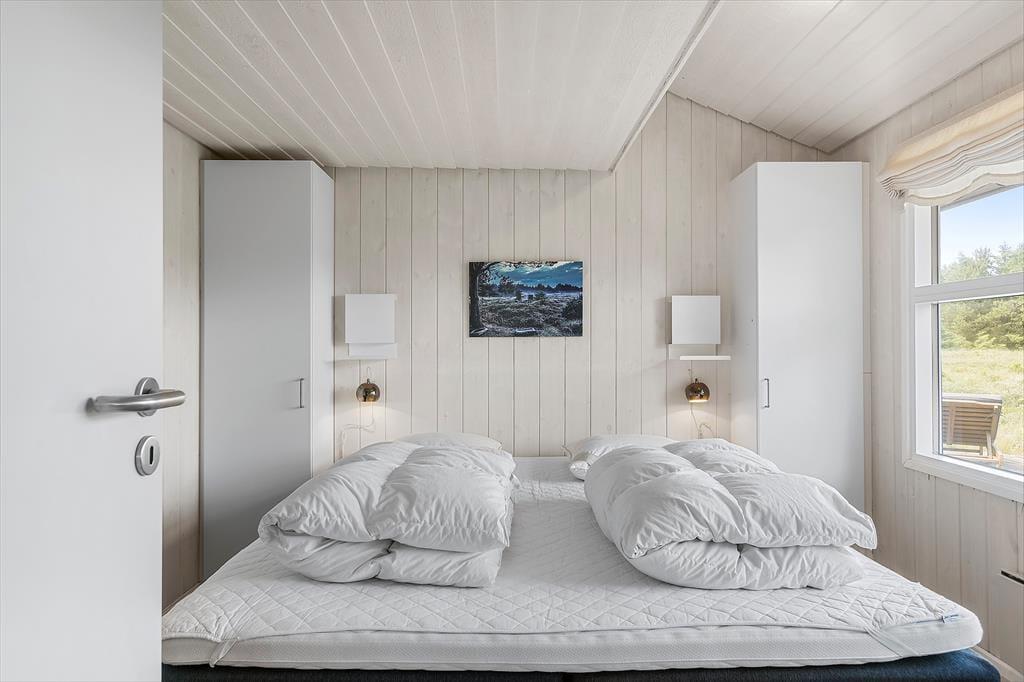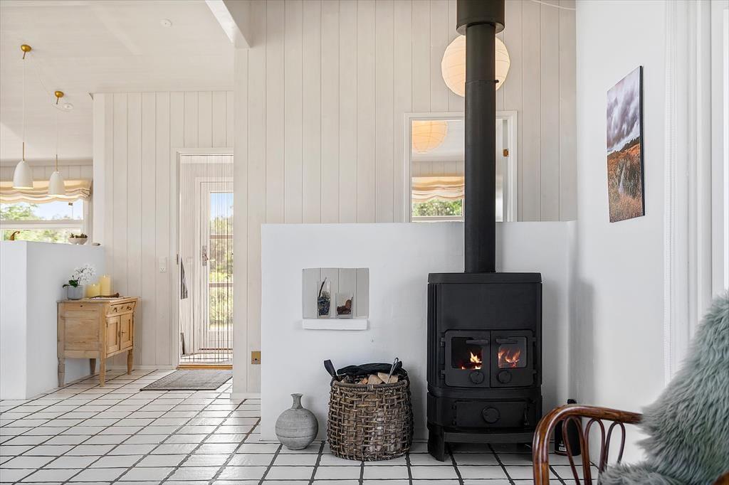 Her er plads til 6 overnattende gæster fordelt på tre værelser, det ene er med køjeseng, og der er også seng og stol til familiens yngste. Køkken, spisestue og stue ligger ud-i-et, her kan I samles til måltiderne, og til afslapning foran brændeovnen, hvis vejret er til den kølige side. Badeværelset er udstyret med sauna. Overalt i hele huset er det muligt at gå på det trådløse og gratis internet, så pak gerne tablets og pc med i kufferten. Alt i alt et skønt moderniseret hus, som har fokus på høj kvalitet og smagfuld indretning, som vi kan anbefale til alle, der drømmer om en ferie i rolige omgivelser tæt på Vesterhavet.
