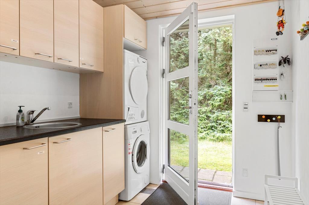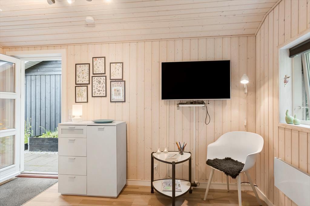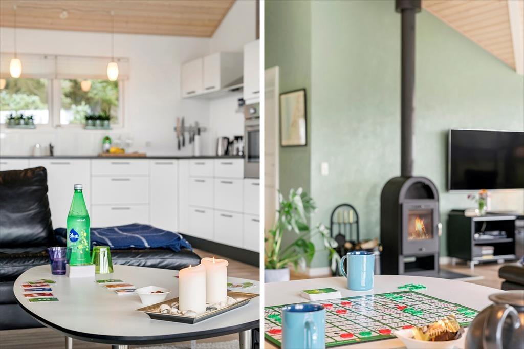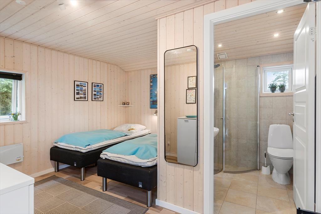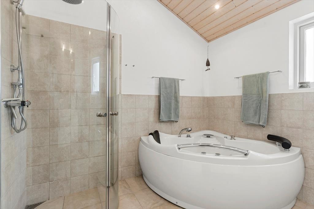 Sommerhuset består af et hovedhus og et anneks. I annekset er der både to sengepladser og et badeværelse med bruser og gulvvarme; huset er derfor velegnet til to familier, eller hvis man har større børn med, som gerne vil have lidt privatliv. I hovedhuset er endnu to værelser og et flot badeværelse med bruser og spa, foruden et rummeligt køkken med spiseplads og en stor dejlig stue med mange siddepladser i sofaen og de behagelige lænestole. Al inventar og alle møbler er i god kvalitet, og de store vinduer lukker en masse lys ind i sommerhuset, som har en varm og venlig atmosfære. Til de mindste børn er her stol og seng, og med vaskemaskine og tørretumbler til rådighed er det nemt at få rent badetøj og rene håndklæder undervejs. Desuden har sommerhuset trådløst og gratis internet, så medbring gerne pc eller tablet.
