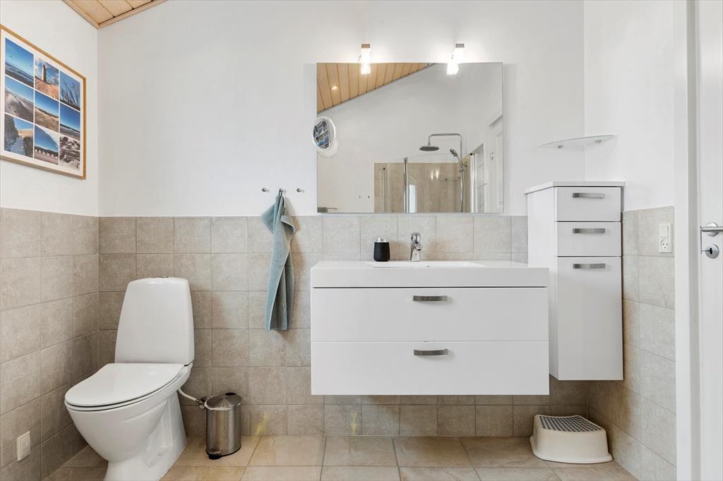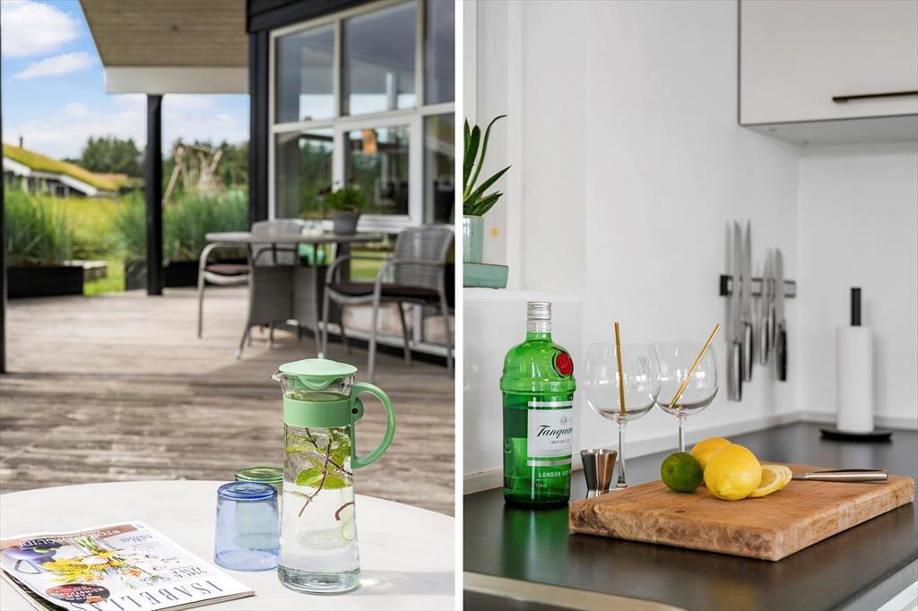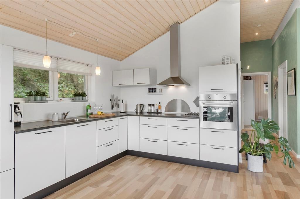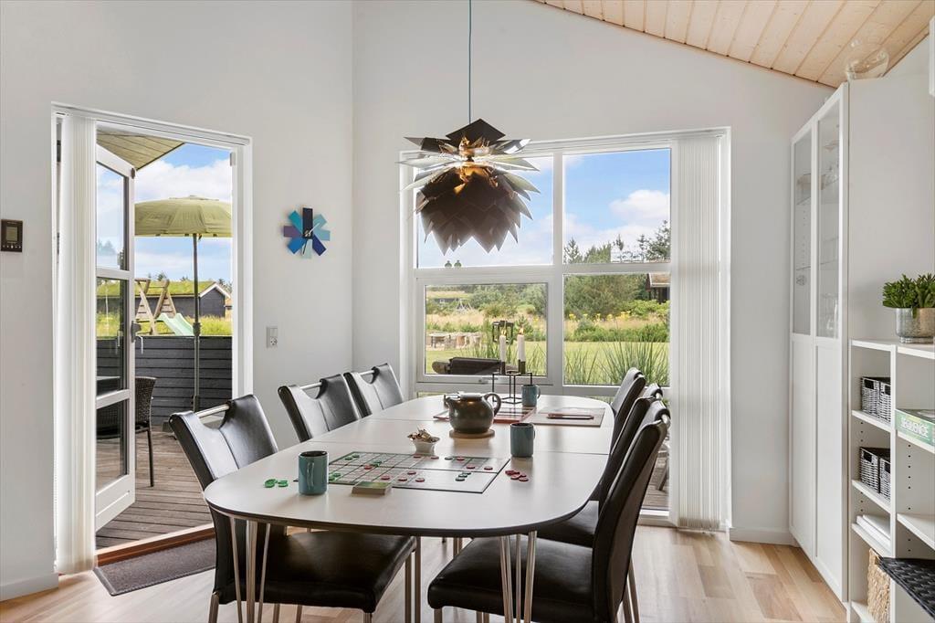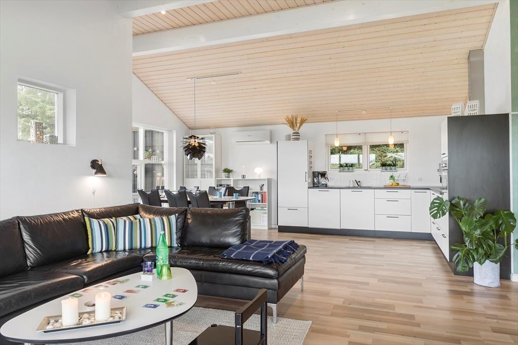 Sommerhuset består af et hovedhus og et anneks. I annekset er der både to sengepladser og et badeværelse med bruser og gulvvarme; huset er derfor velegnet til to familier, eller hvis man har større børn med, som gerne vil have lidt privatliv. I hovedhuset er endnu to værelser og et flot badeværelse med bruser og spa, foruden et rummeligt køkken med spiseplads og en stor dejlig stue med mange siddepladser i sofaen og de behagelige lænestole. Al inventar og alle møbler er i god kvalitet, og de store vinduer lukker en masse lys ind i sommerhuset, som har en varm og venlig atmosfære. Til de mindste børn er her stol og seng, og med vaskemaskine og tørretumbler til rådighed er det nemt at få rent badetøj og rene håndklæder undervejs. Desuden har sommerhuset trådløst og gratis internet, så medbring gerne pc eller tablet.