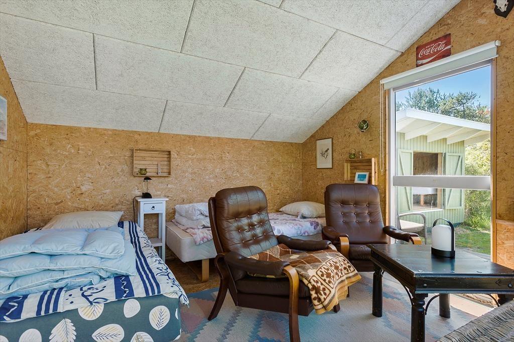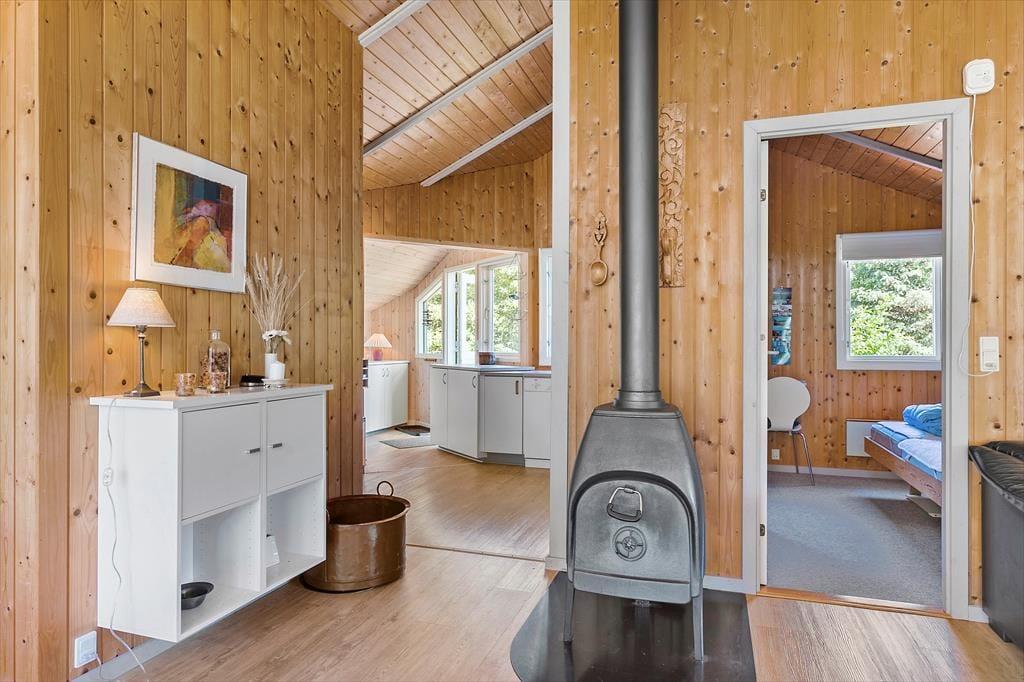 Sommerhuset er hyggeligt og pænt indrettet, og det er særdeles velegnet til en lille familie eller til parret, som gerne vil have god plads og fred og ro. Det flotte renoverede køkken fra 2024 støder op til det store opholdsrum. I stuen er spiseplads og et hyggeligt sofamiljø. Det er her man spiser, hygger og slapper af med ild i brændeovnen og en god bog eller en film fra den store parabolpakke fra Viasat. Sommerhuset har 2 værelser og et badeværelse med brusekabine. En god kombination af funktionalitet, hyggelig stemning og gode rammer. Som noget nyt i 2018 er der blevet bygget et Annex til huset med 2 sovepladser, Tv og Playstation, så dette er de perfekte rammer for børn eller teenagere i huset.